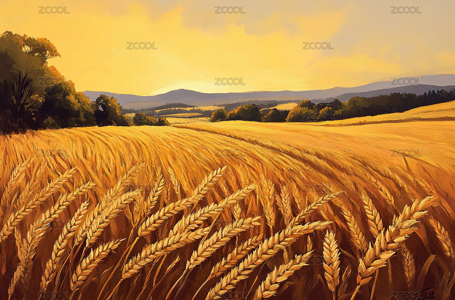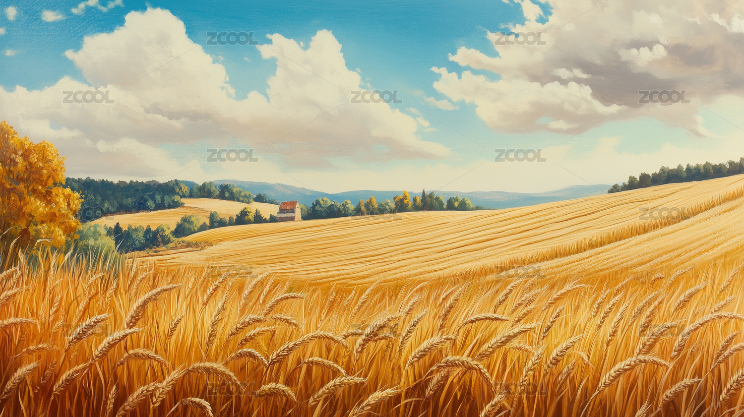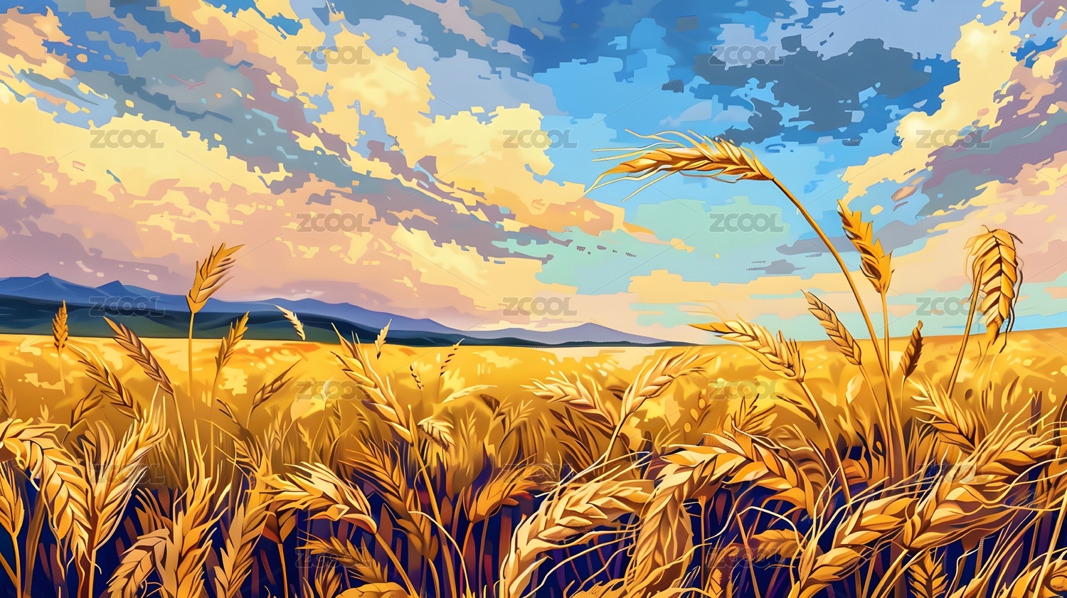 户外,收获,插画,农业,自然,天空,小麦,谷物,田地