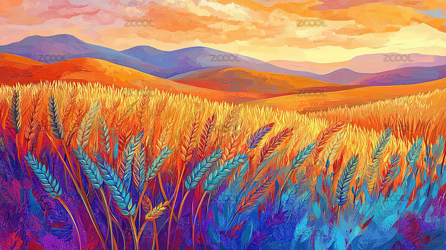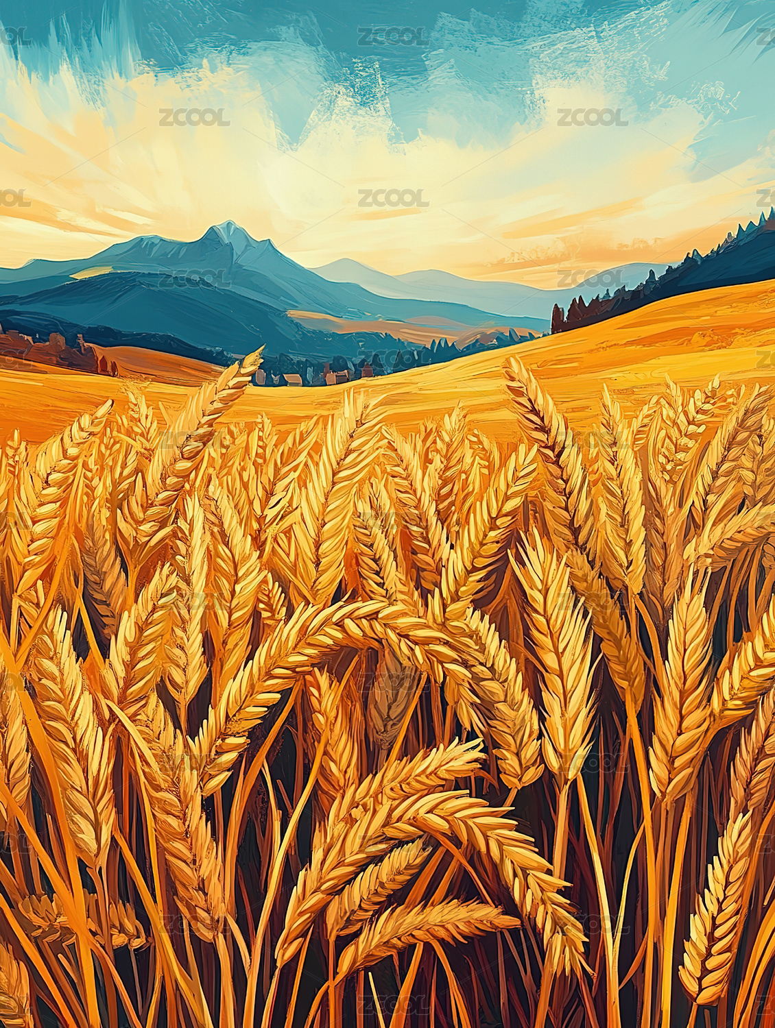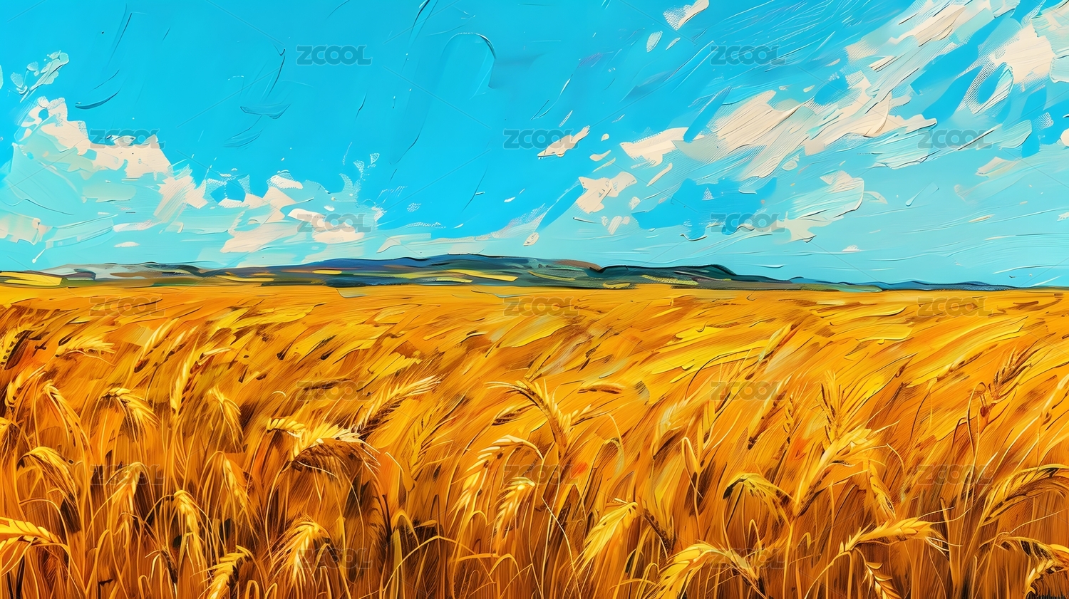 户外,收获,插画,农业,自然,天空,小麦,谷物,田地