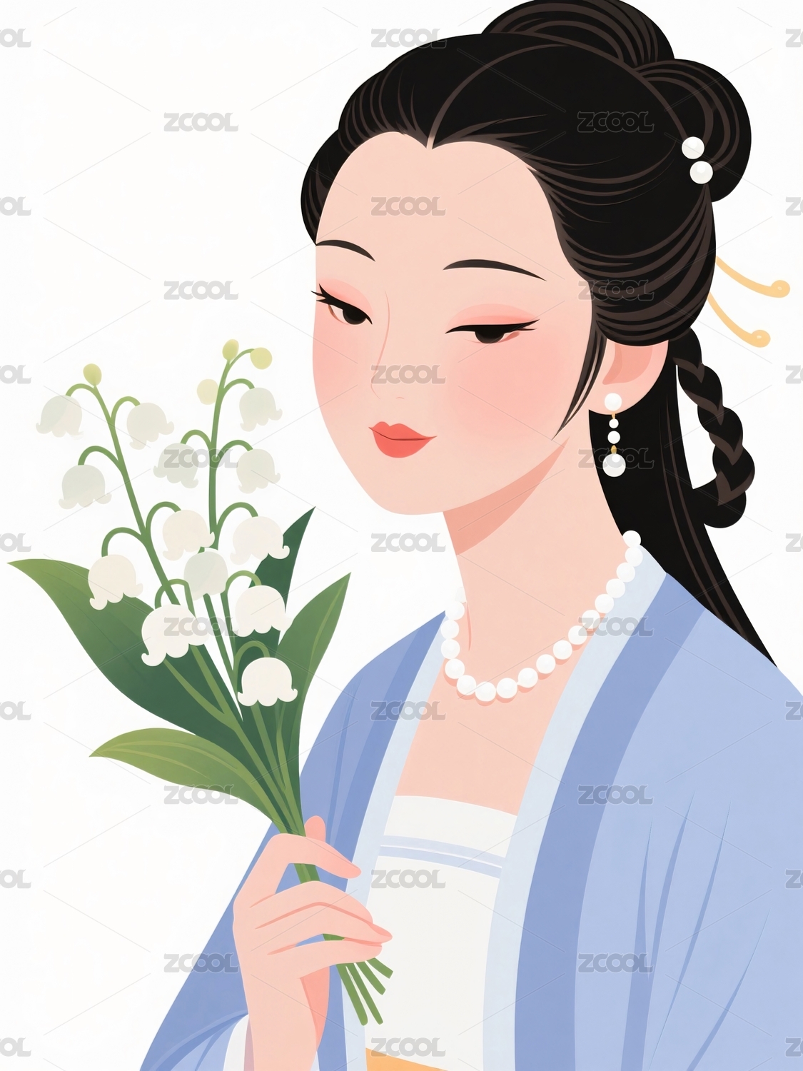 古装女子手持铃兰花朵