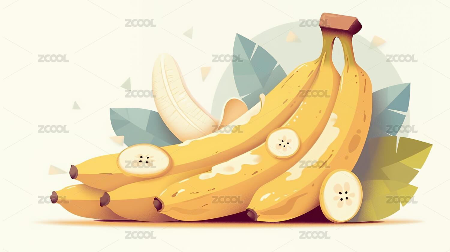 香蕉,香蕉片,芭蕉叶,食物,水果,矢量插画,扁平风格,装饰,抽象,艺术