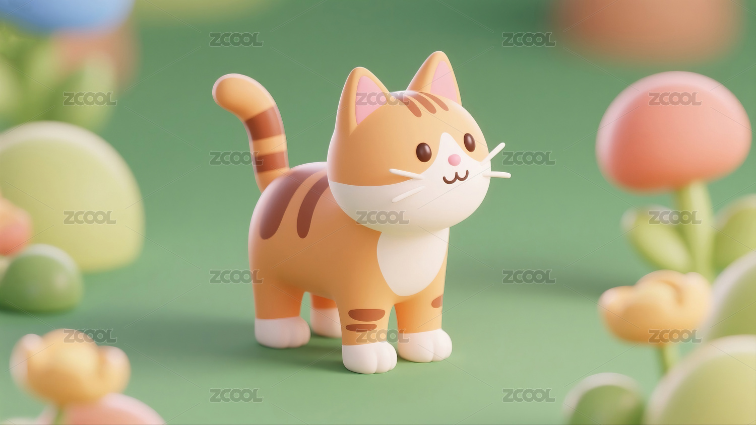 3D渲染卡通可爱小白猫