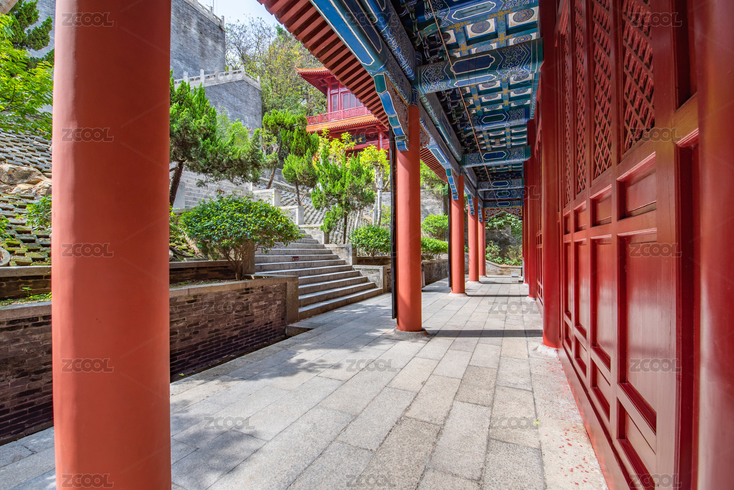 中国广东省广州市莲花山风景区莲华禅寺走廊
