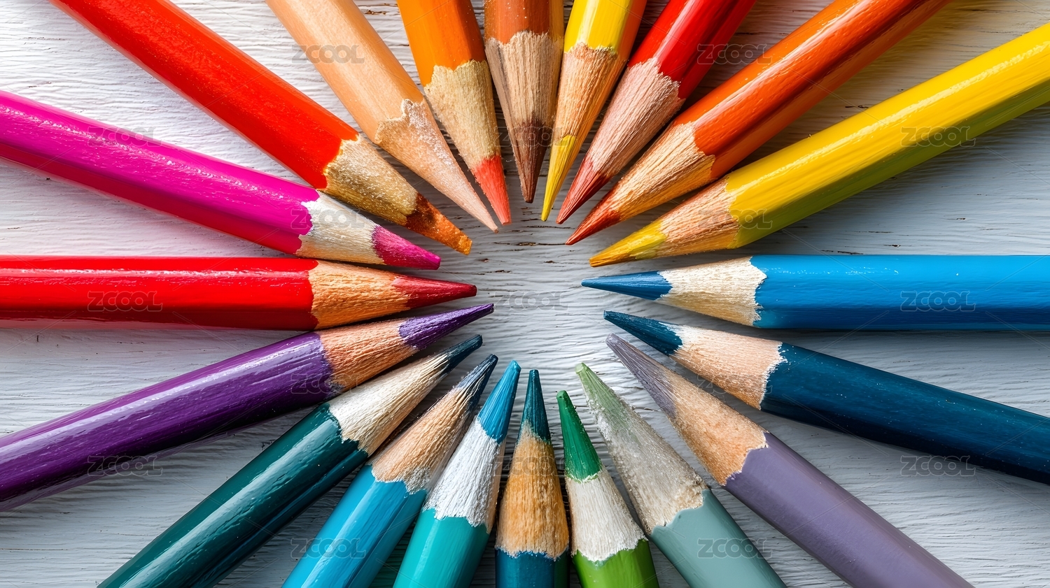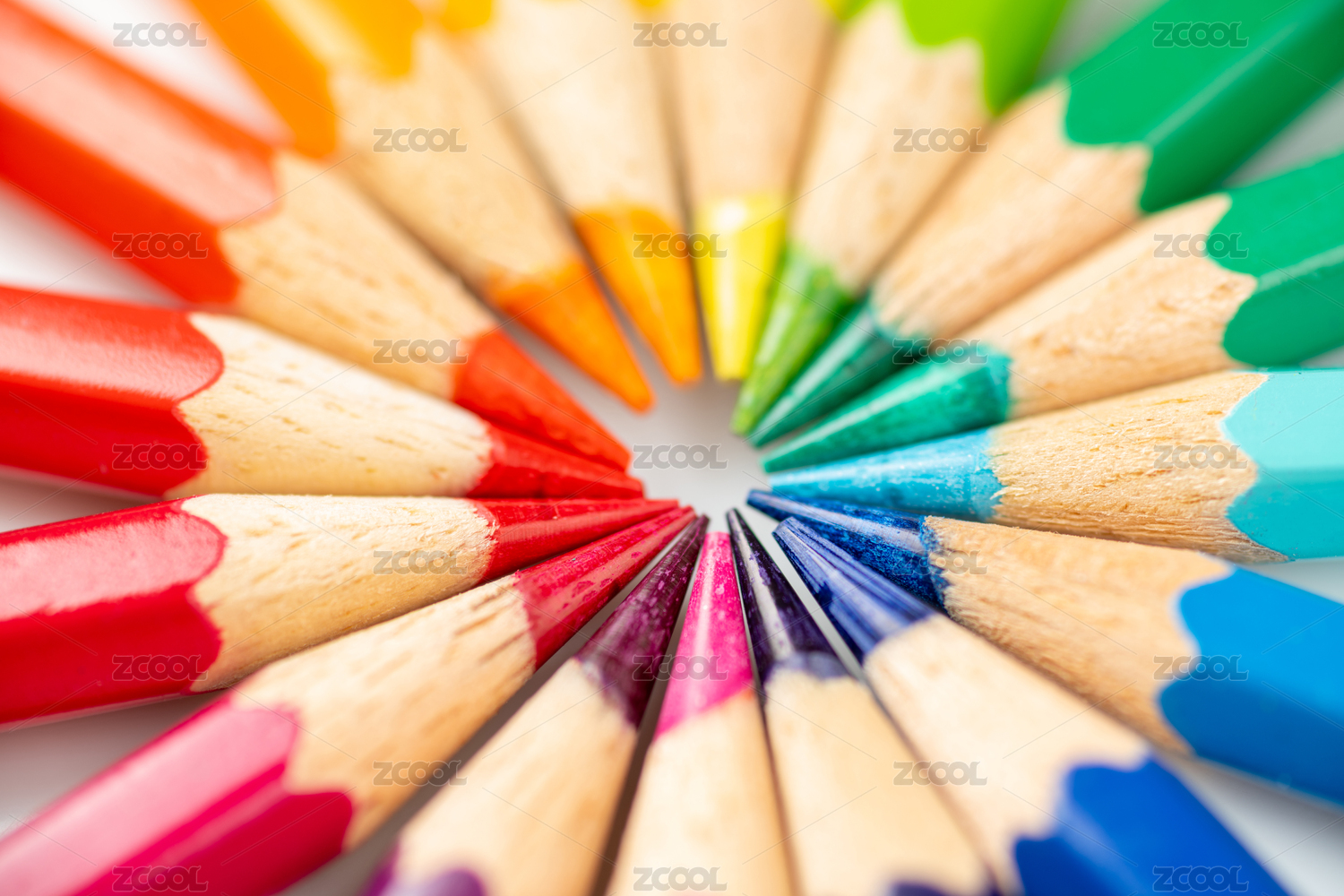 彩色铅笔排列成圆圈