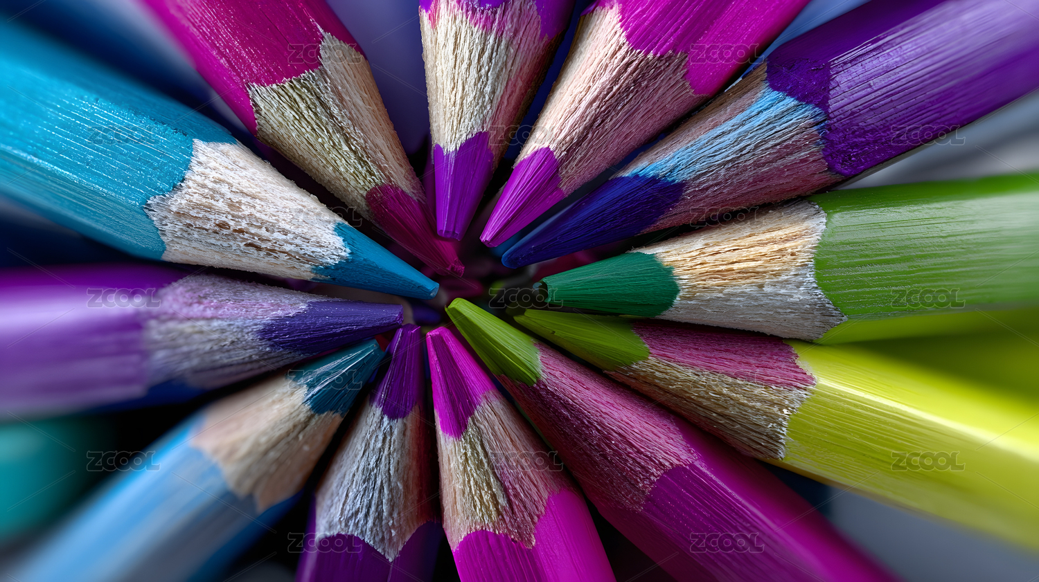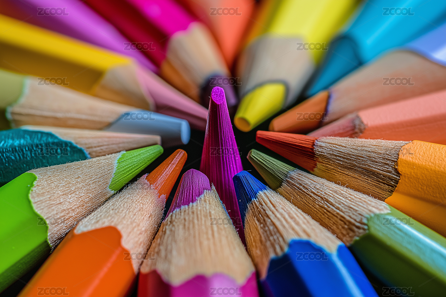 彩色铅笔以中心对称的方式排列