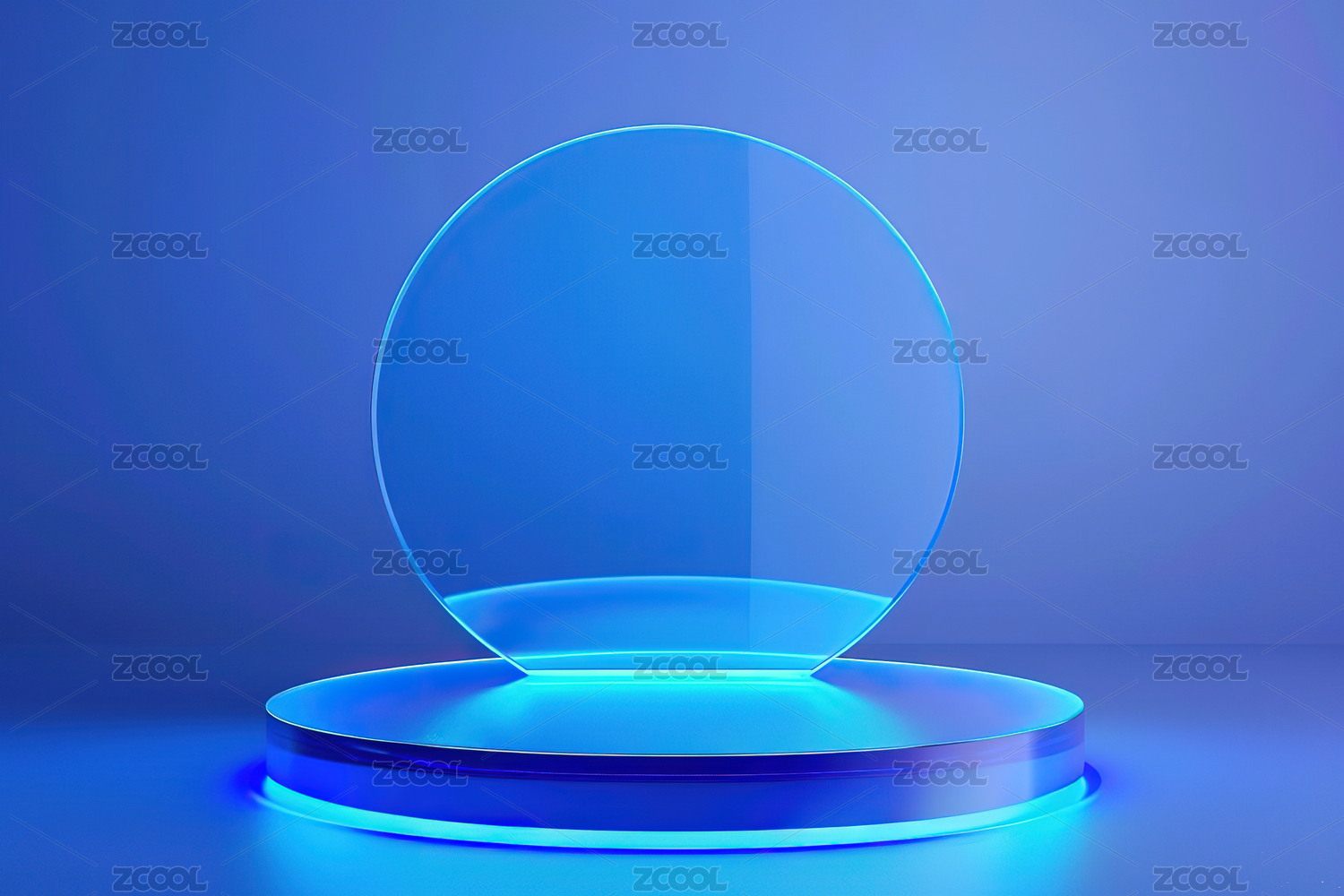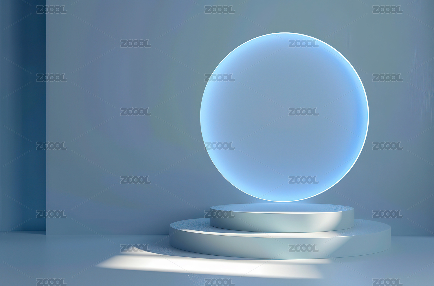 蓝色光圈环绕的圆形展台