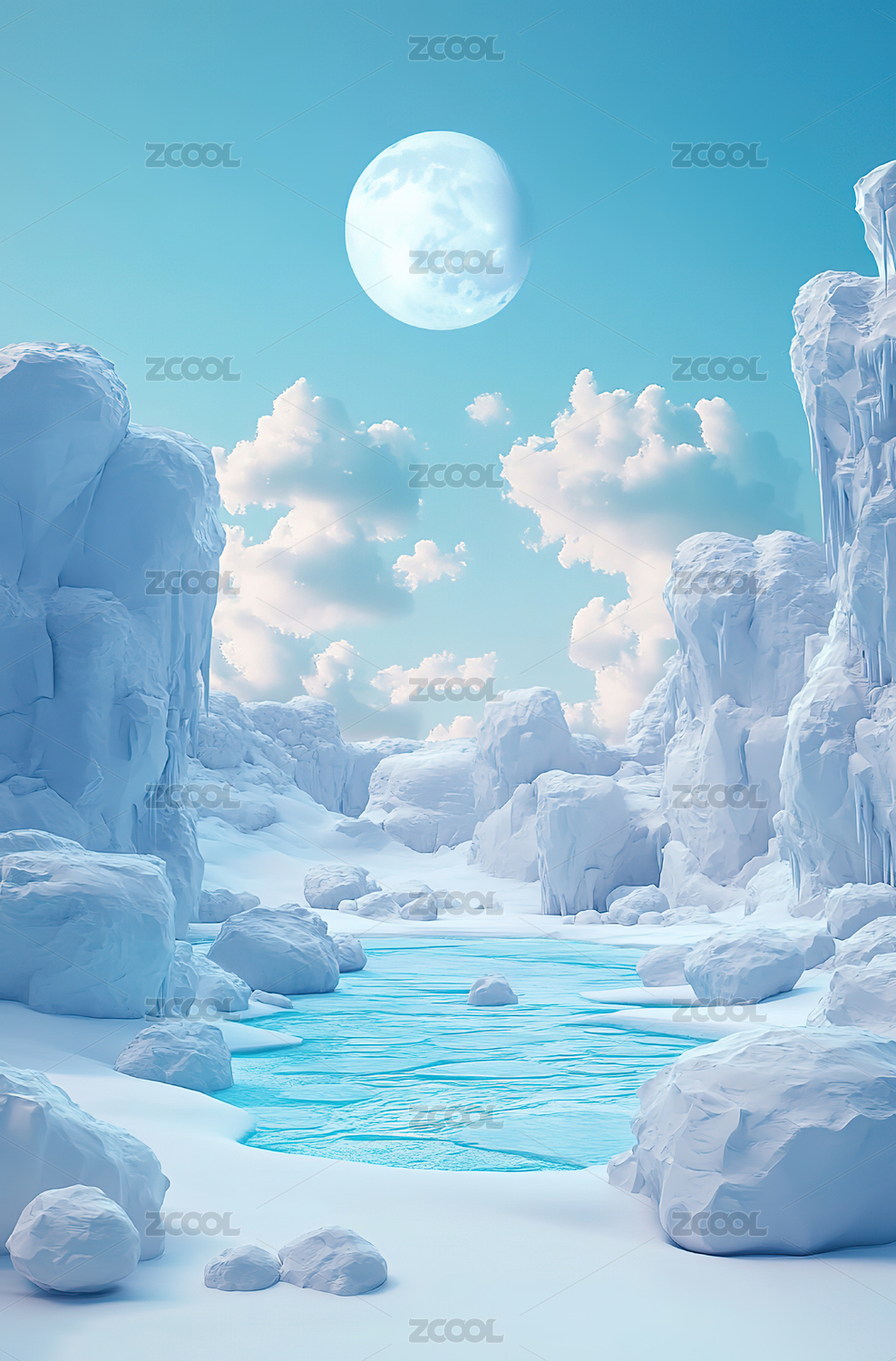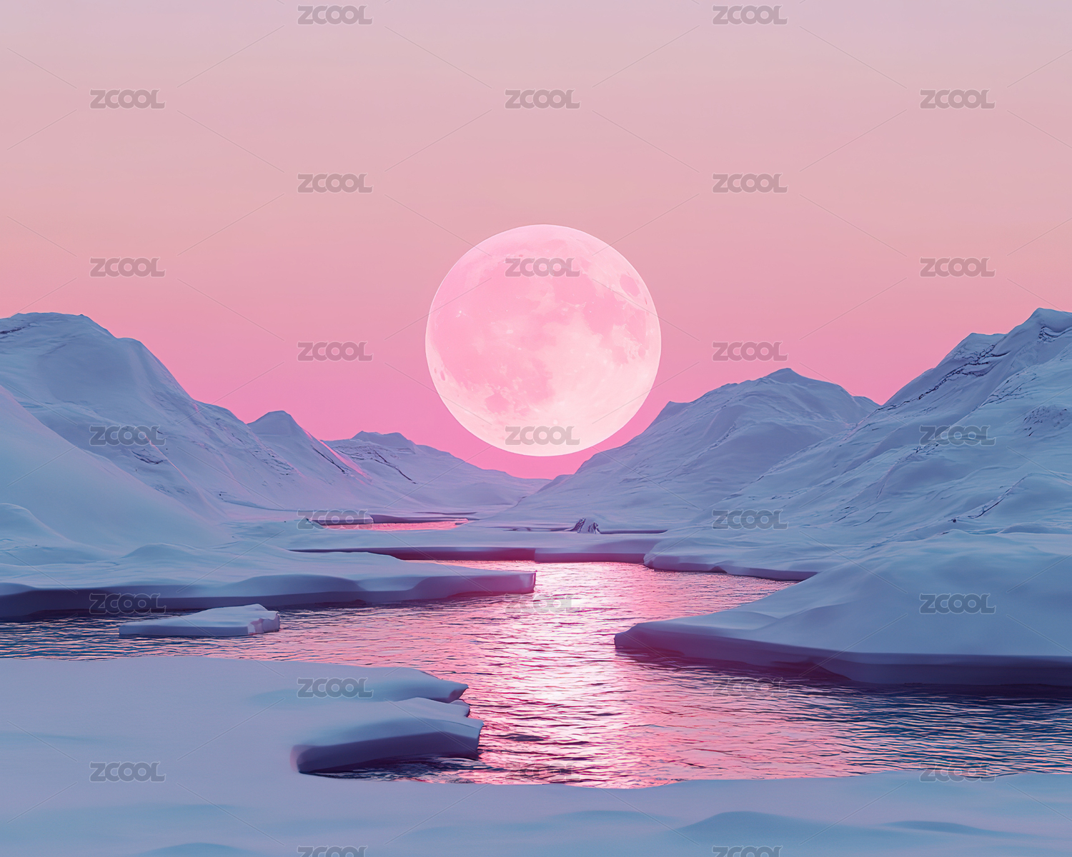 夜晚山水湖面明月倒影自然风光3D中秋场景
