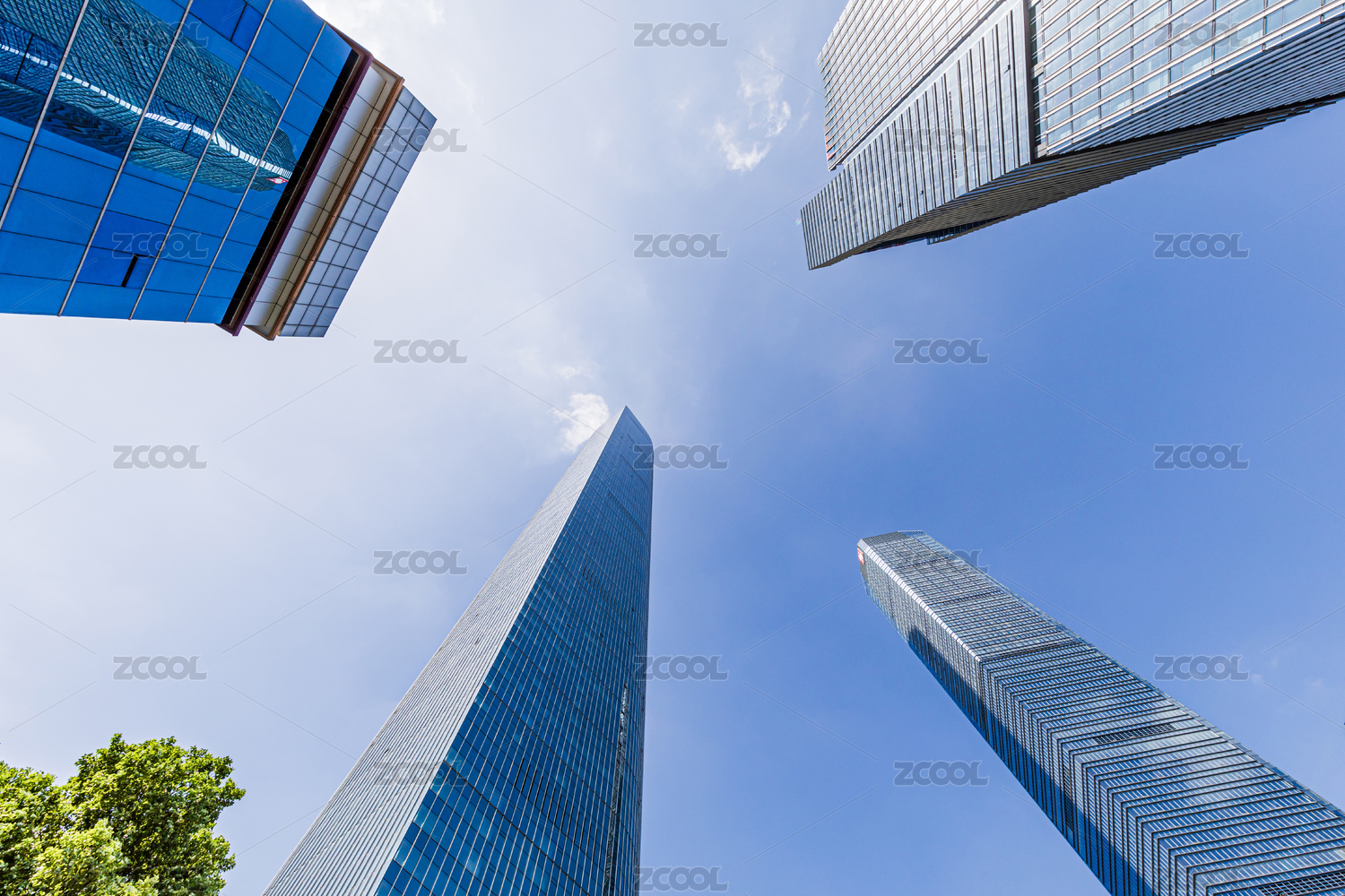 广州市天河区CBD建筑外立面玻璃幕墙仰视