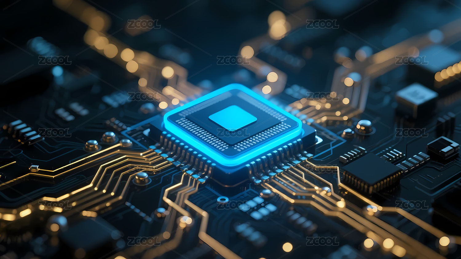科技感的芯片与电路板画面