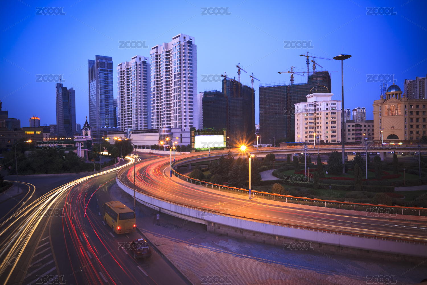 上海陆家嘴金融区建筑夜景和城市街道车流光影轨迹