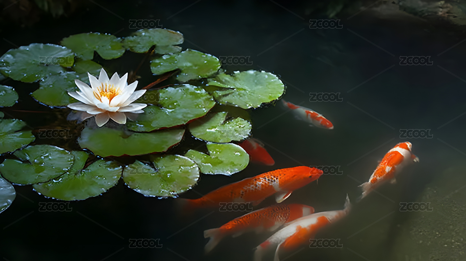 美丽,夏天,传统,游泳,水,金鱼,美化,植物,自然,湖