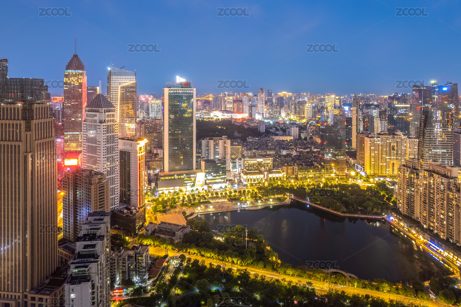 航拍,武汉风光,湖北省,汉口CBD,汉口金融中心,摩天大楼,城市夜景,都市风光,城市天际线,著名景点