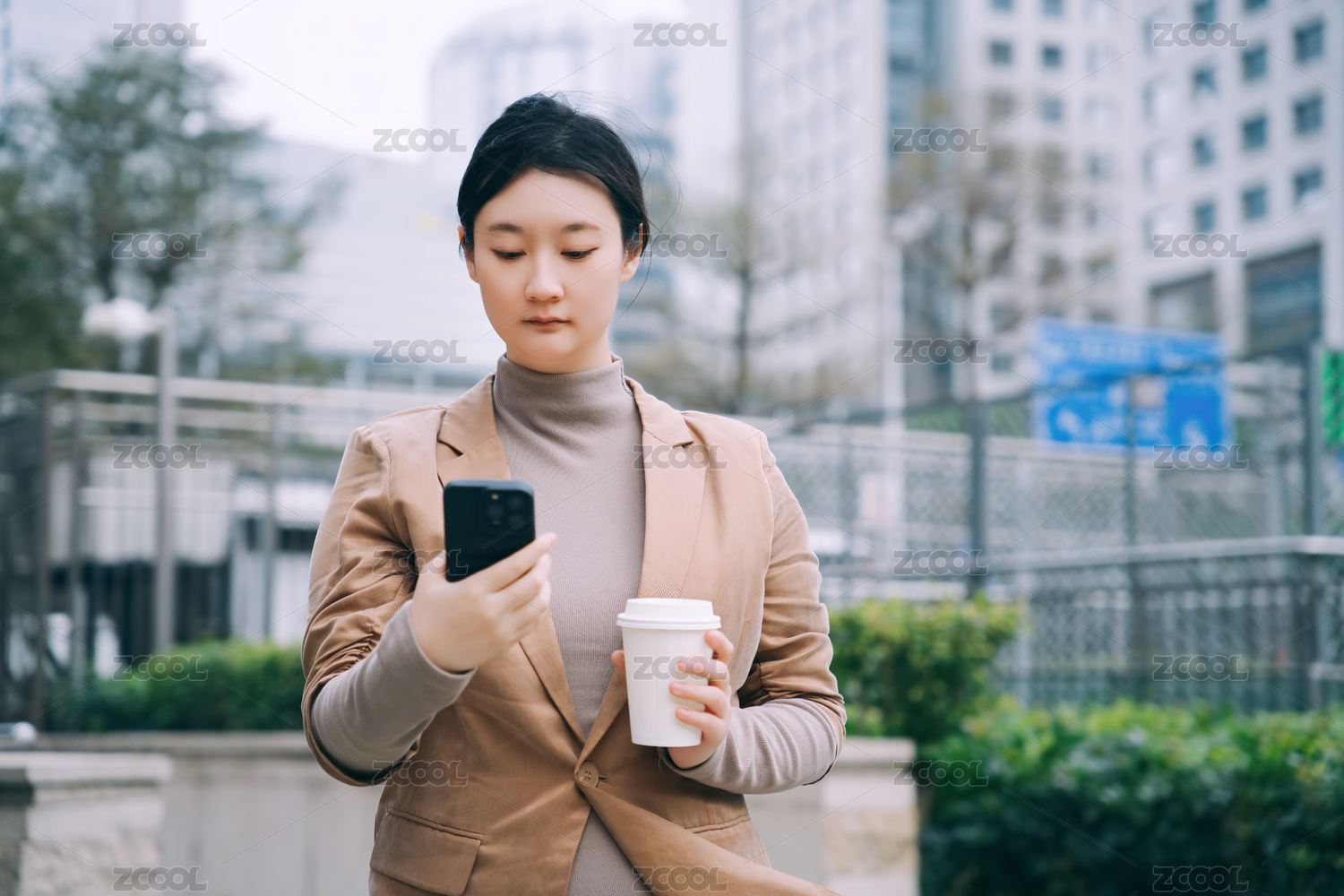女商人,企业生活方式,现代专业人士,技术用户,城市工作,茶歇,智能手机通讯,城市环境,商务着装,休闲优雅