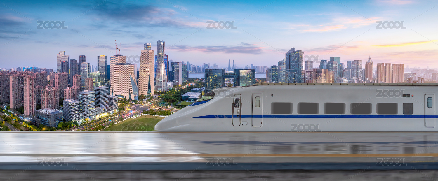 航拍,杭州风光,钱塘江南岸,建筑外部,都市风景,城市天际线,摩天大楼,户外,交通运输,高铁运行