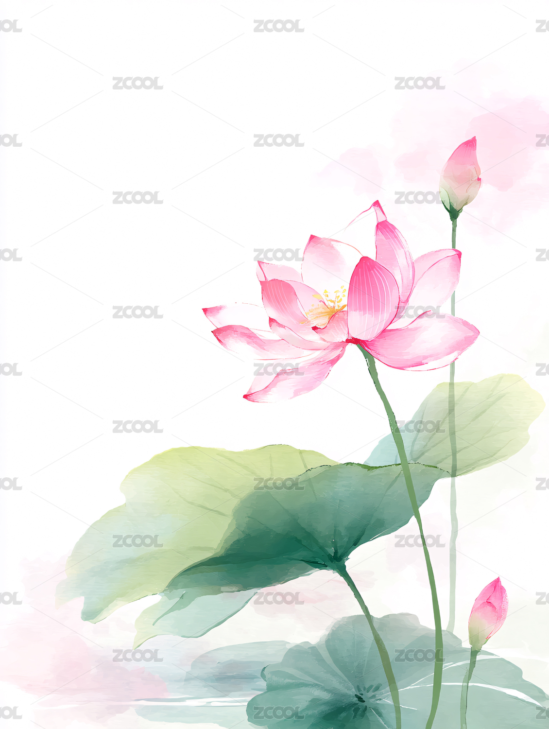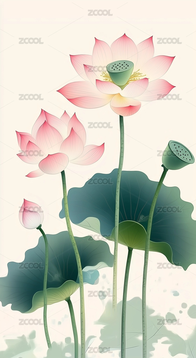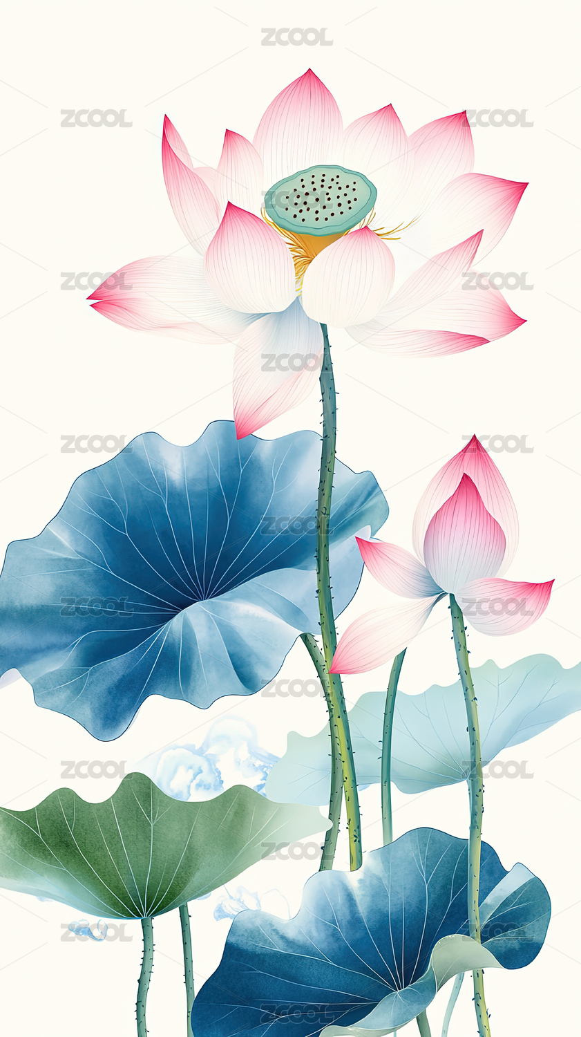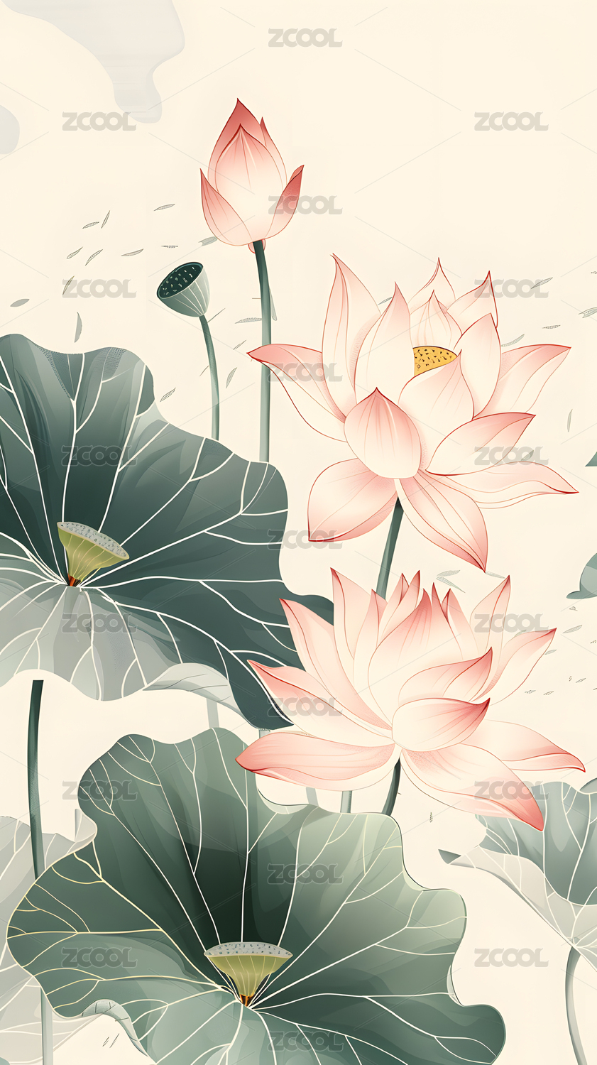 大暑节气夏日荷花夏天池塘荷叶花朵国潮插画