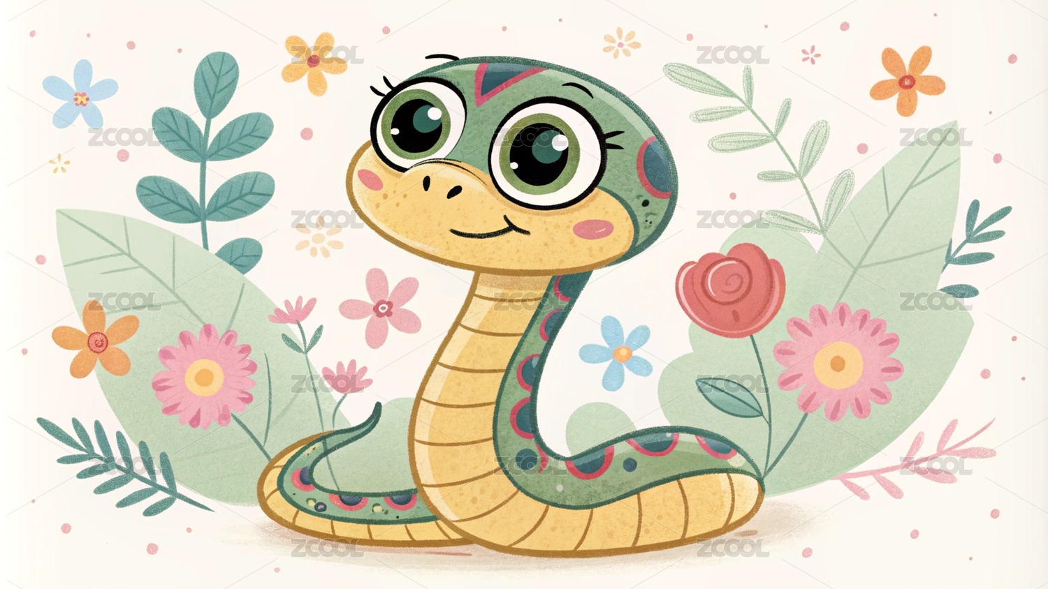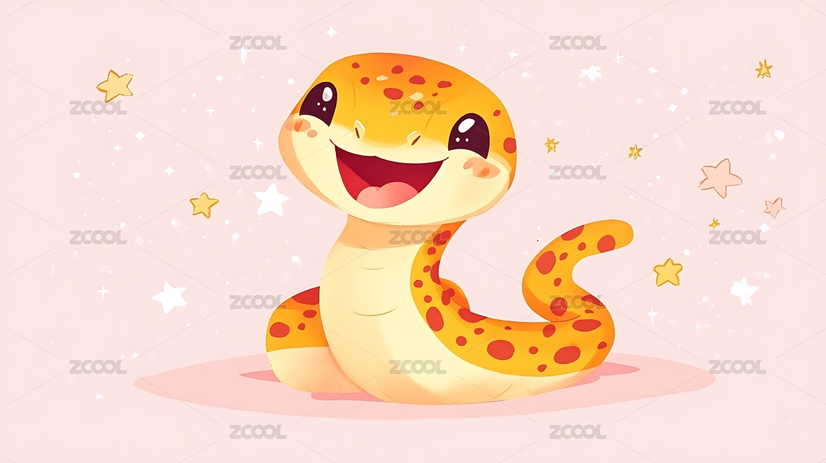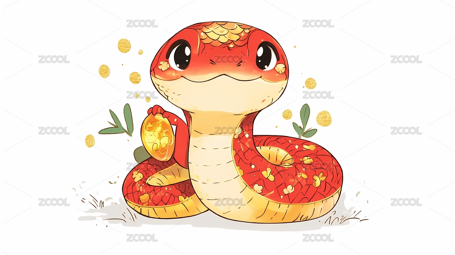 蛇年卡通可爱形象,十二生肖金蛇吉祥物