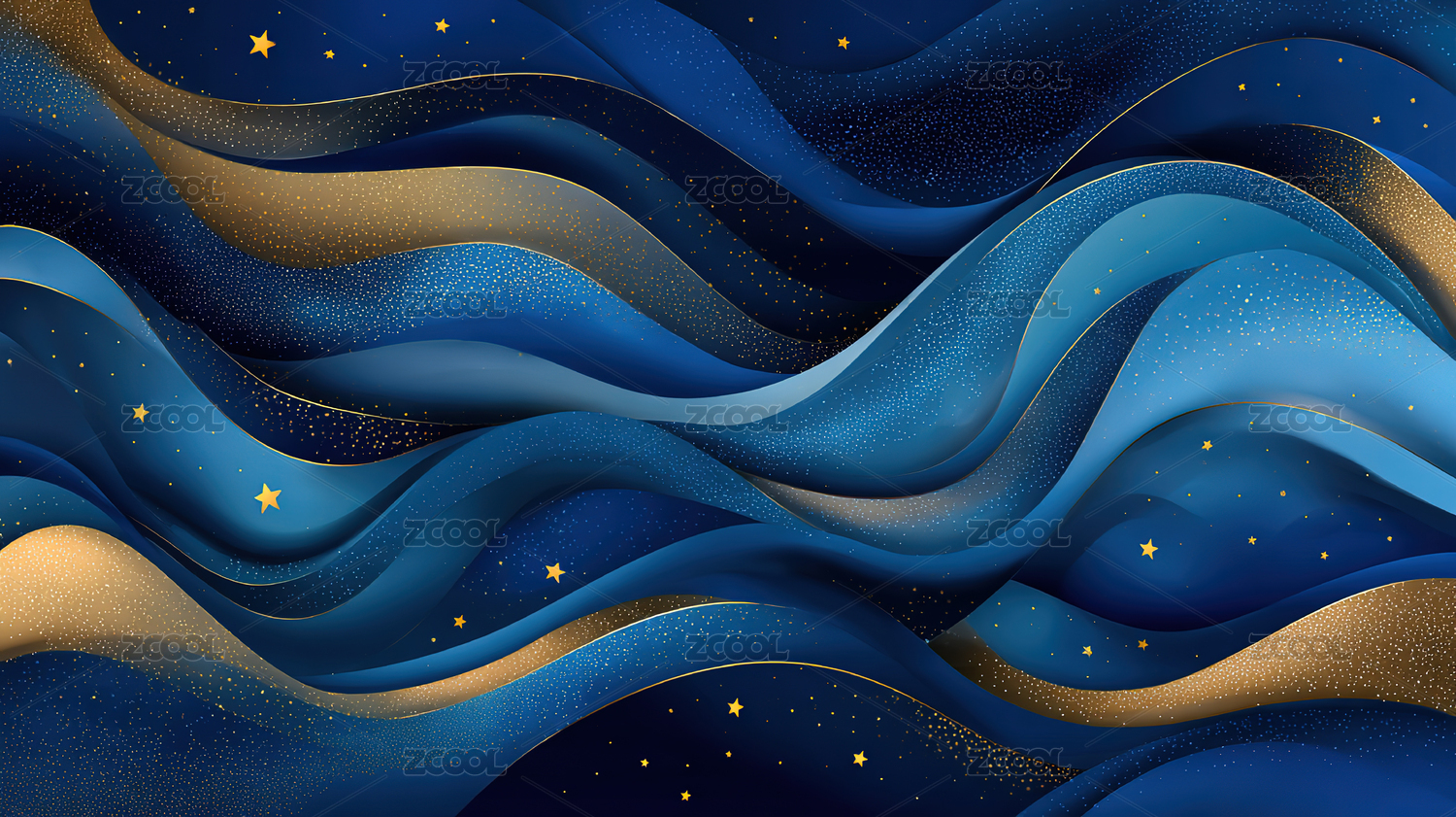 抽象线条波浪发光渐变演示蓝色背景简约壁纸