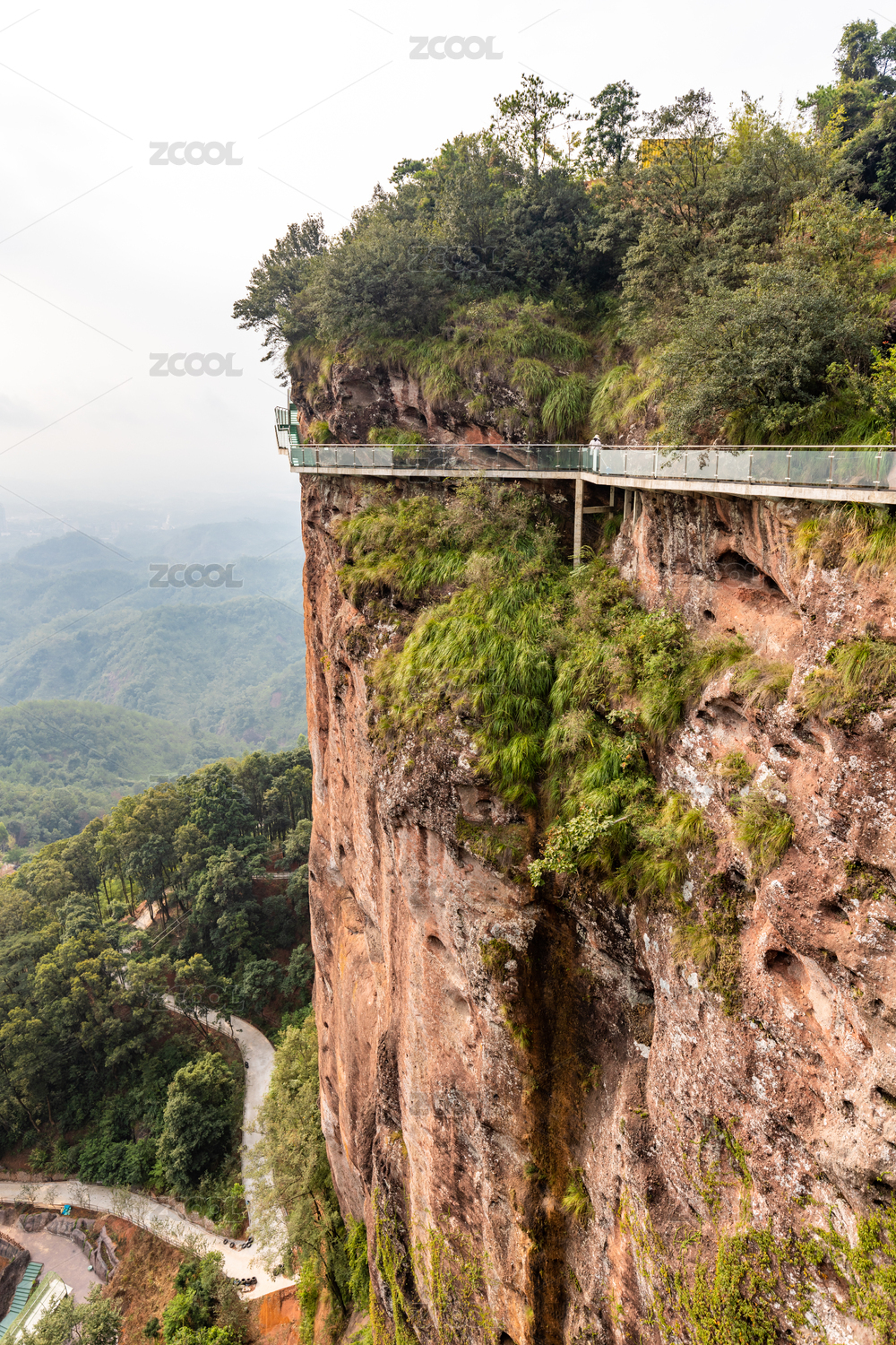 中国女性在乐清雁荡山方洞景区栈道观景台