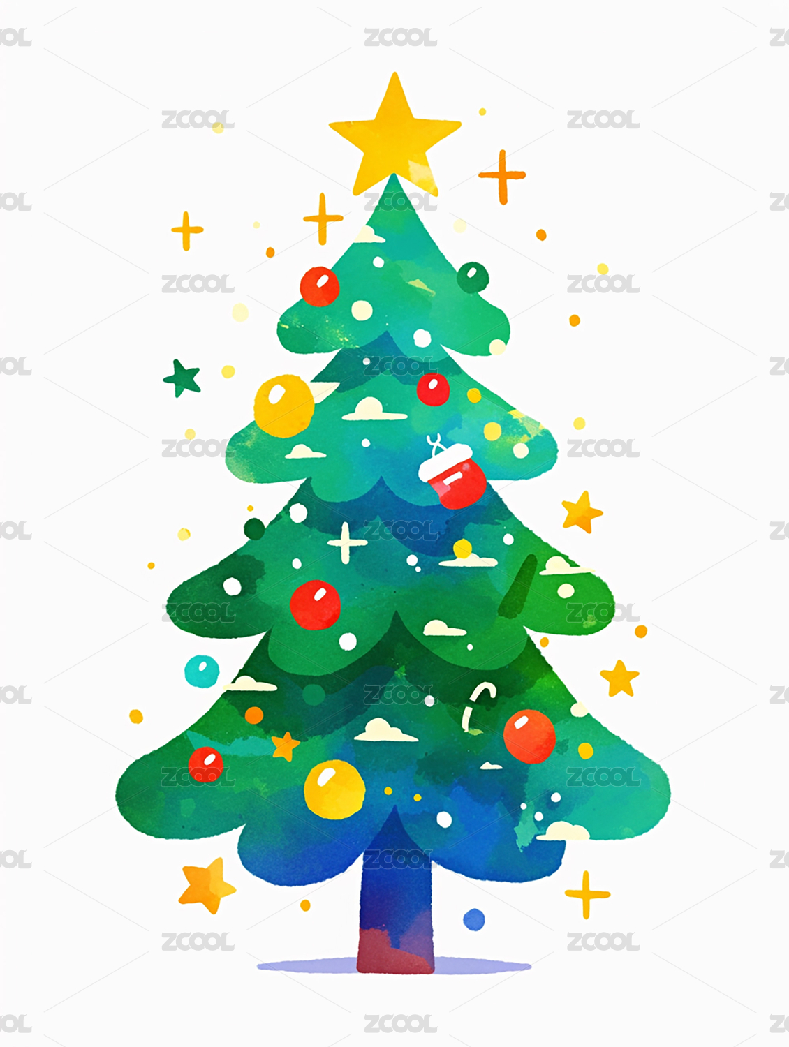 卡通风格的装饰圣诞树
