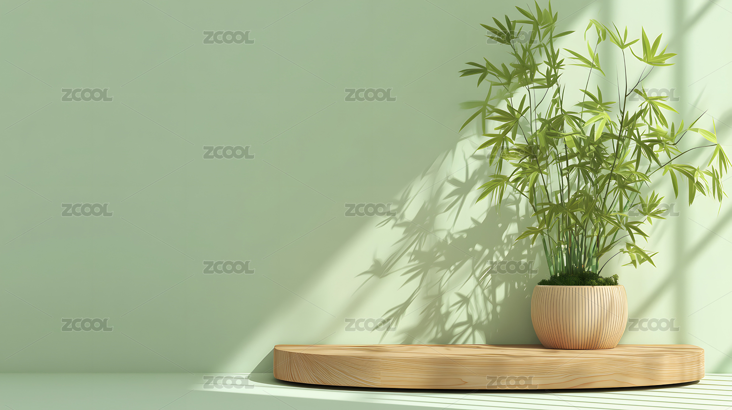 竹子盆栽木纹电商展台绿色小清新背景