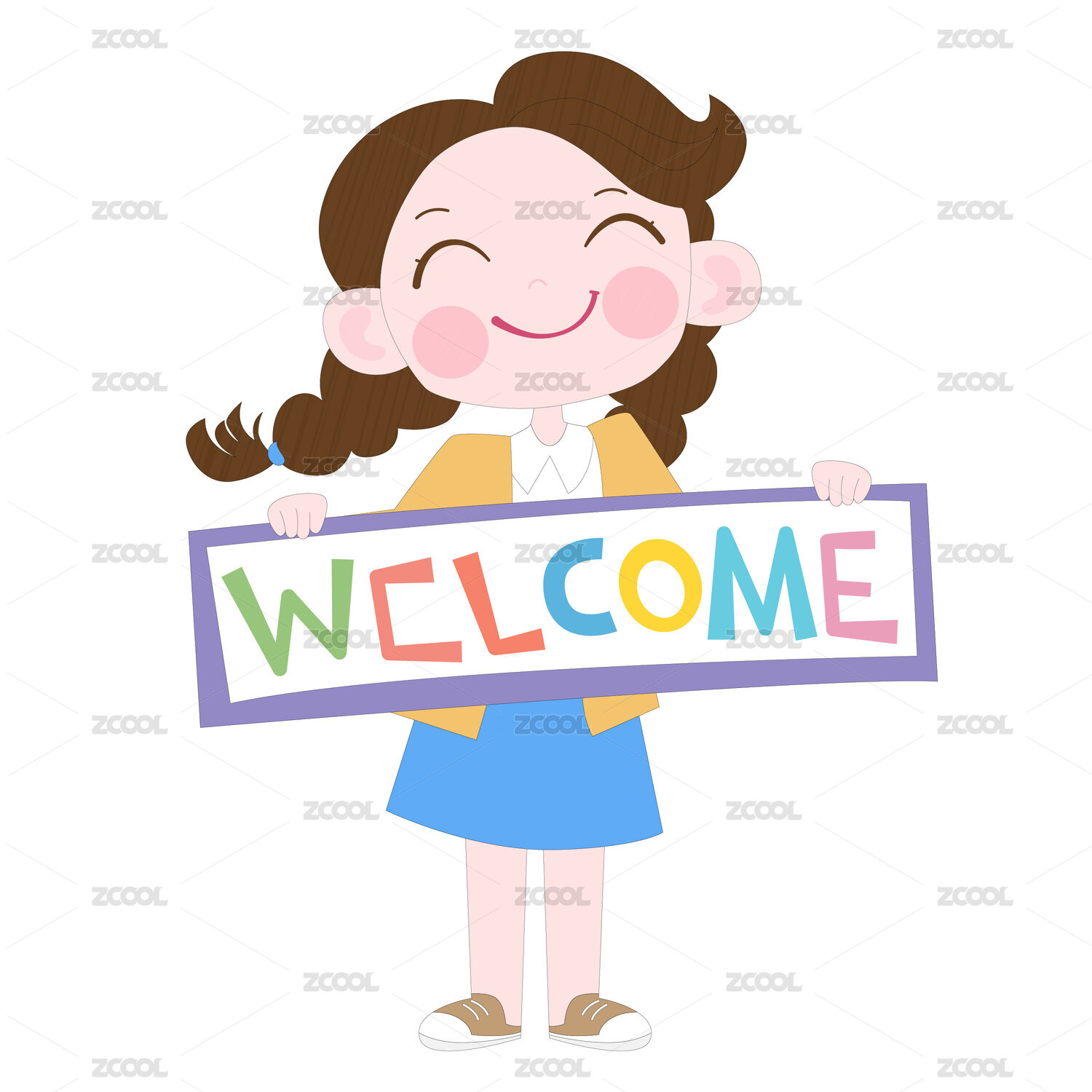 开学季儿童孩子小老师举牌欢迎新同学插画