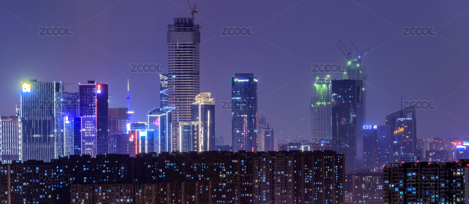 江苏省南京市夜晚滨江河西高楼建筑风光