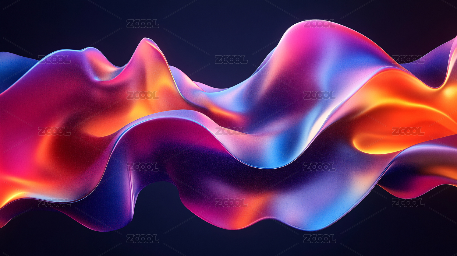 抽象的曲面与线条背景3D渲染,蓝色波浪抽