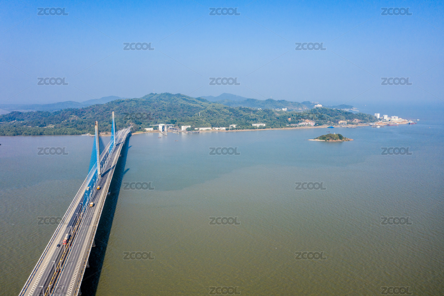 航拍中国广东珠海淇澳岛淇澳大桥风光