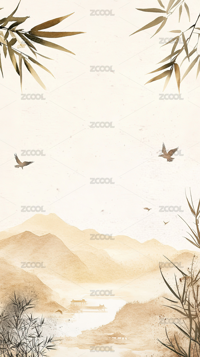 传统文化插图水墨中国画二十四节气秋天仙鹤