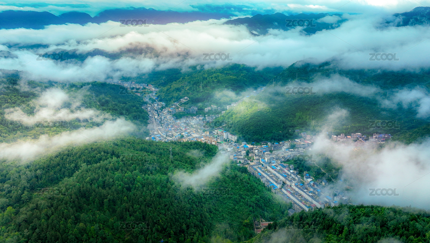 航拍贵州铜仁江口县坝盘镇向阳服务区高速