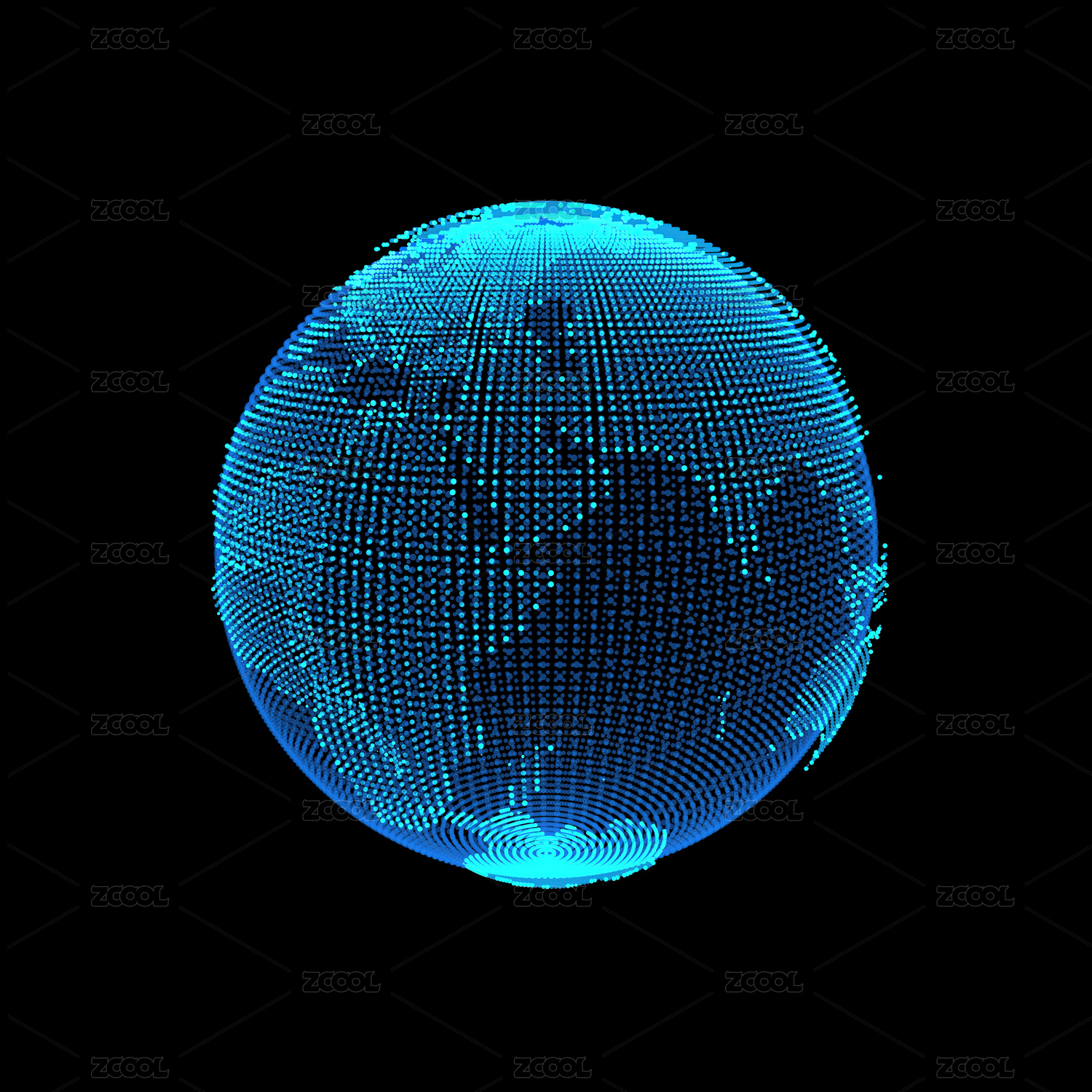 彩色点构成的三维抽象地球,代表全球,国际意义。