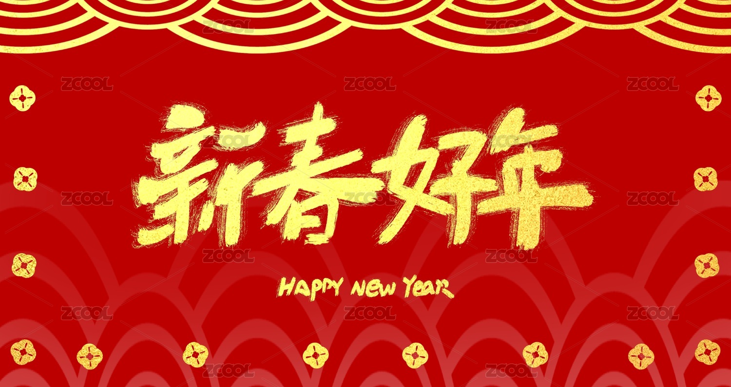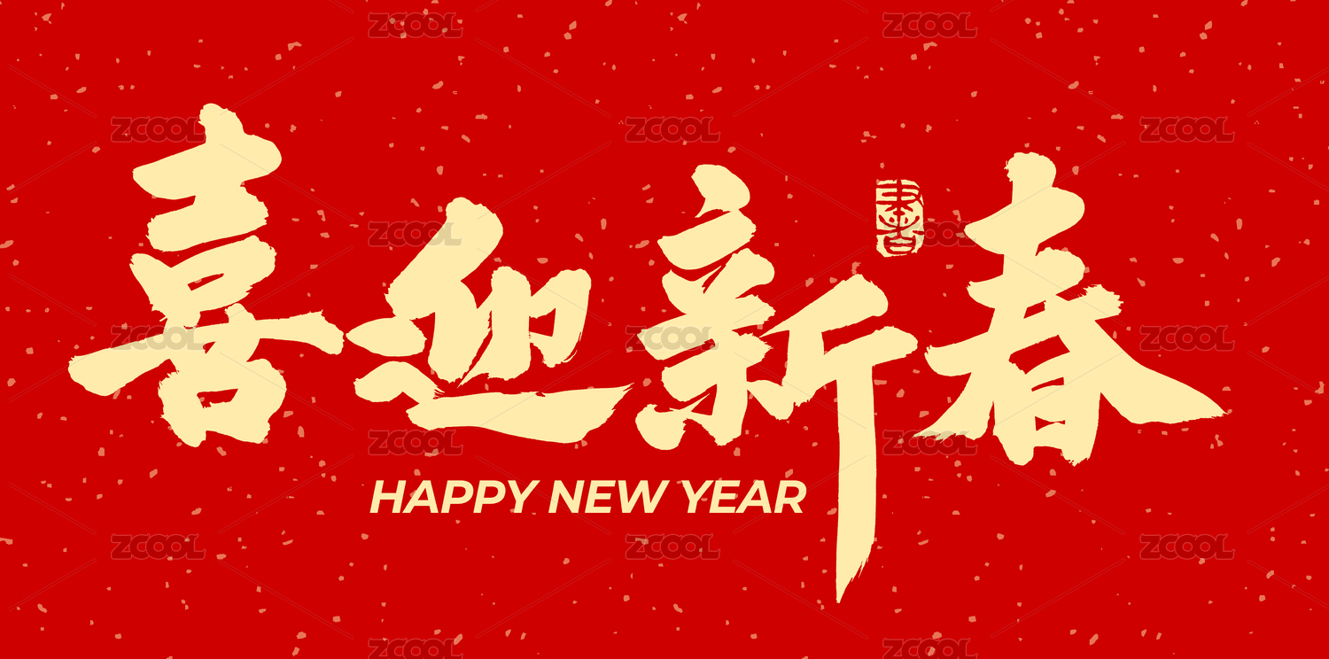 红色背景喜庆新年春节艺术字手写