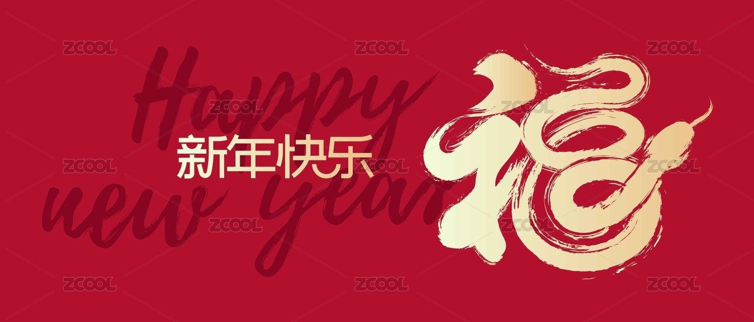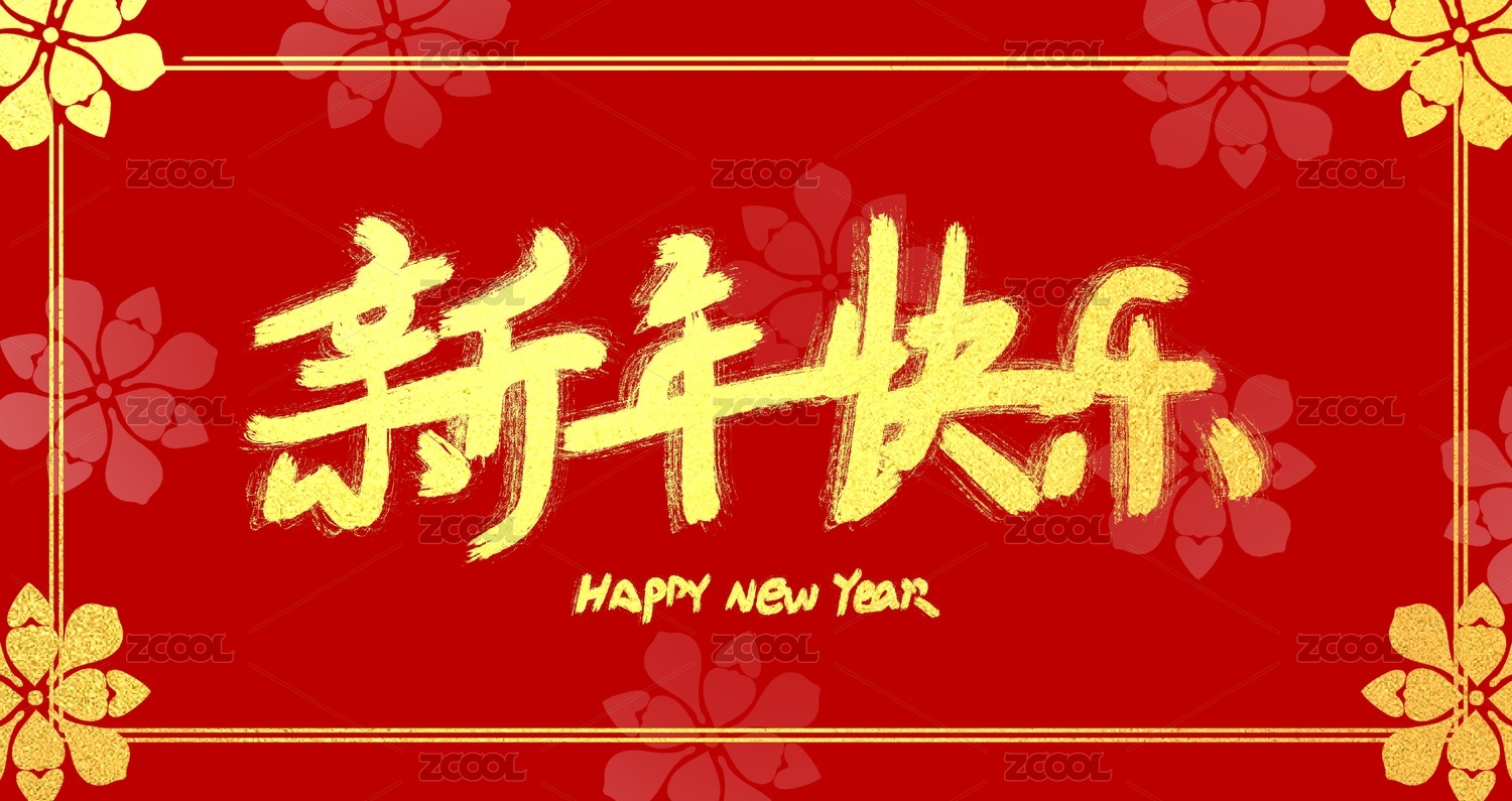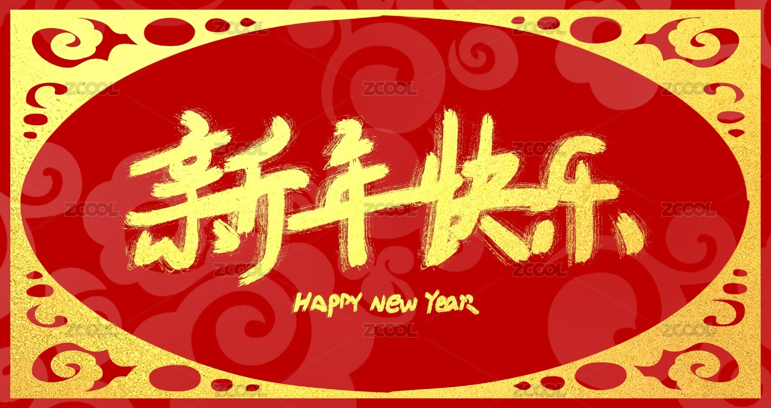 新年快乐 元旦 春节手写中文汉字书法字体