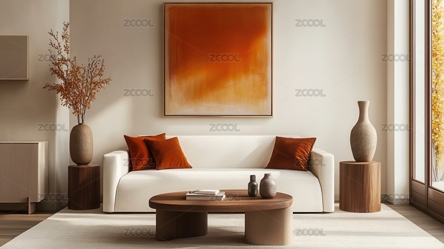 秋日暖阳下的舒适客厅