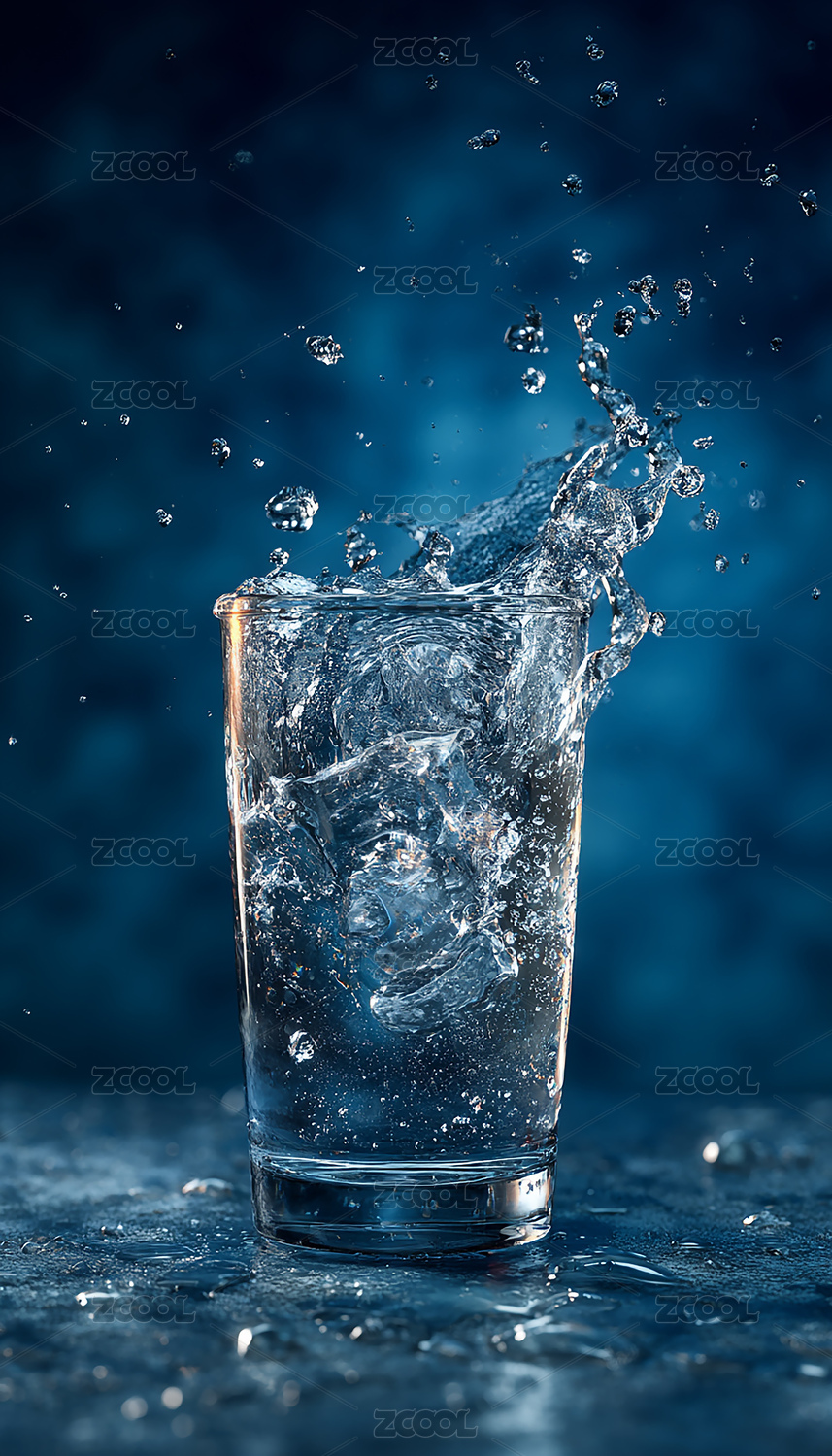 晶莹剔透的水杯与光影效果