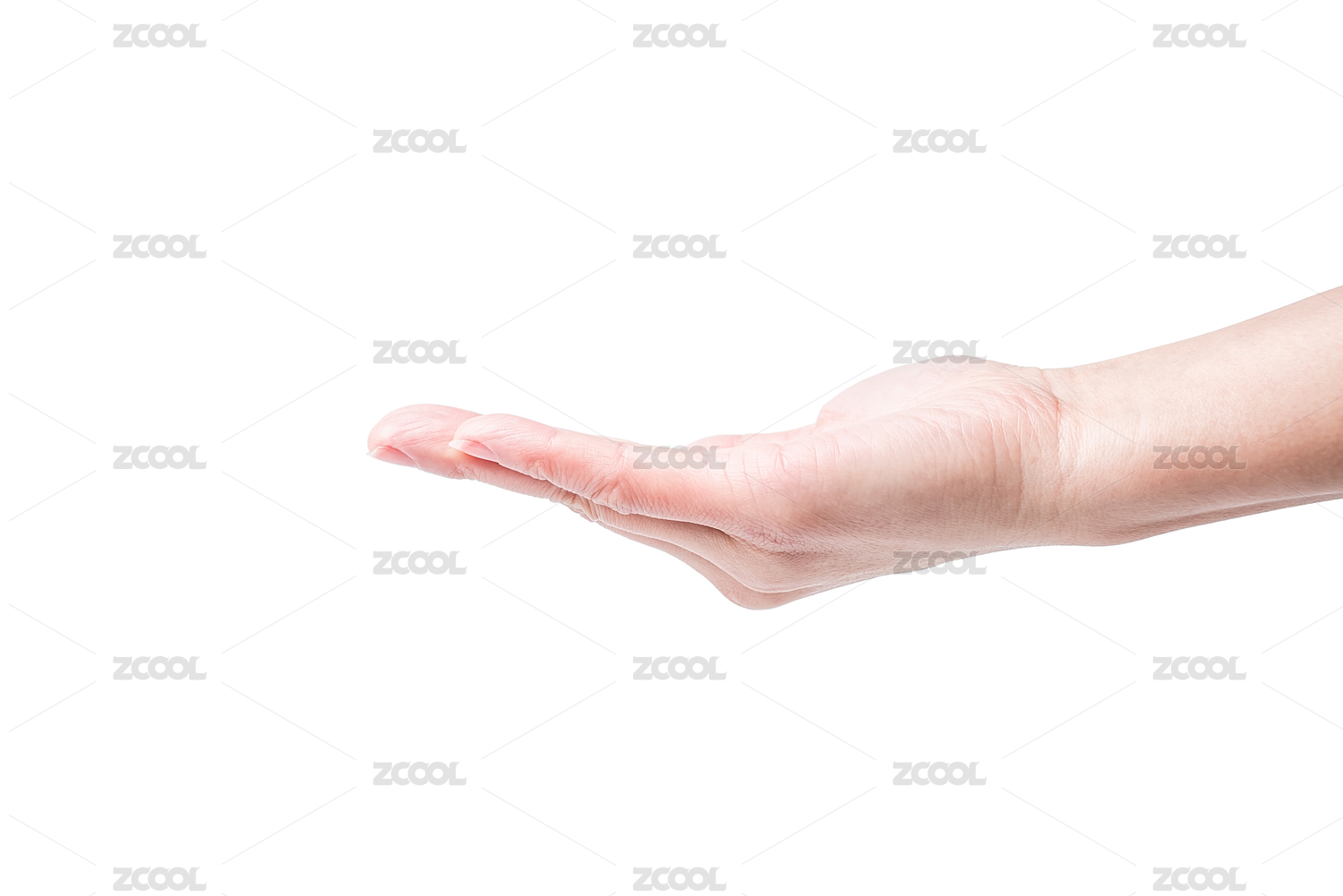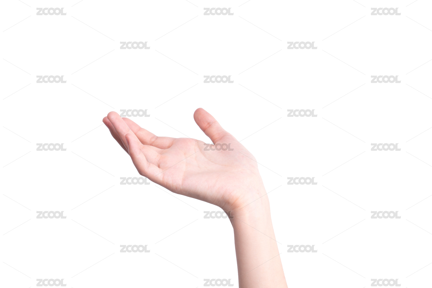 白色背景前手掌托起,展示手势