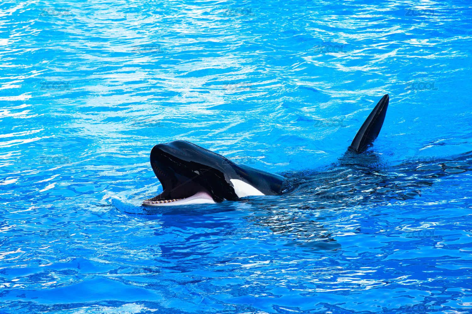 四川成都极地海洋公园里正在表扬节目的白鲸
