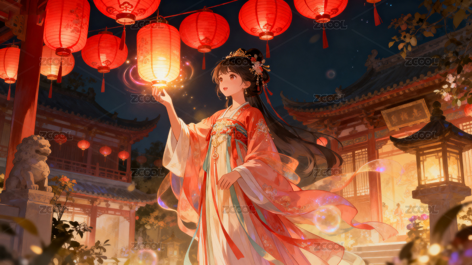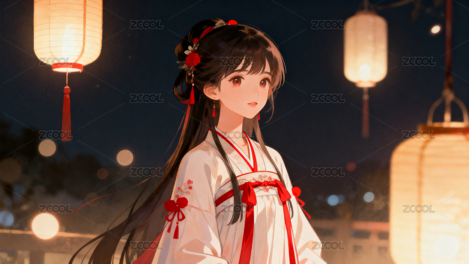 和服,闹市,花灯,灯笼,女孩,独自,一人