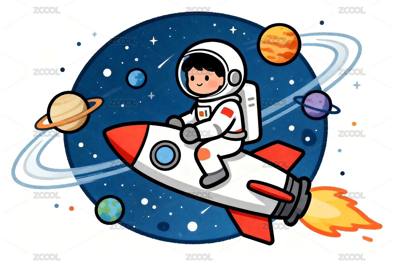 卡通小宇航员太空宇宙探险航天梦想儿童插画