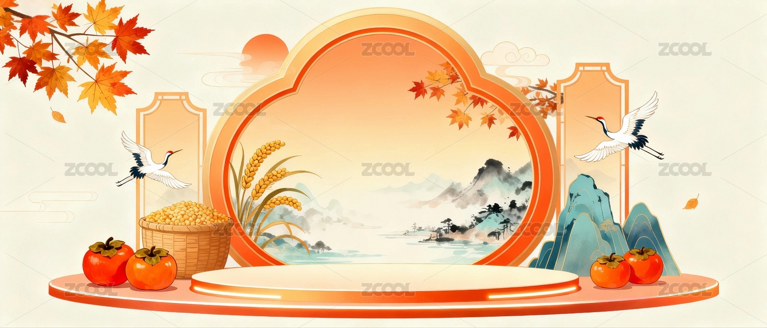 大闸蟹,霜降,寒露,螃蟹,黄色,橙色,秋天,秋季,中式,水墨