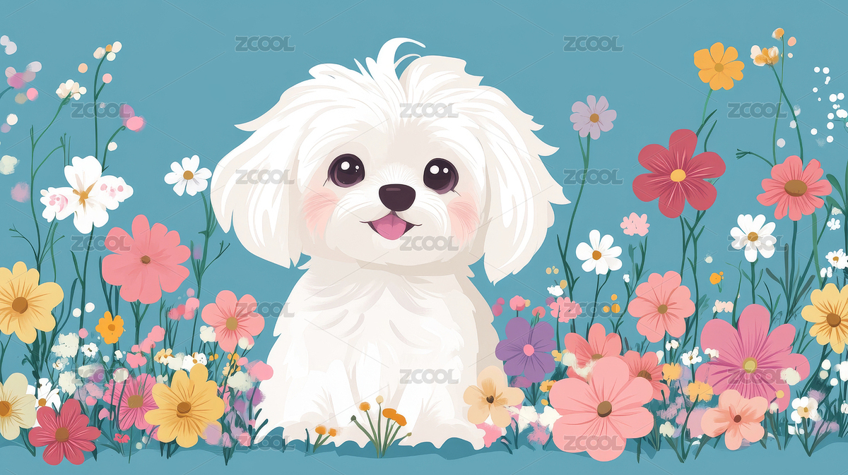 宠物,小狗,狗狗,犬,动物,狗,盯着,花,白色花,橙色花