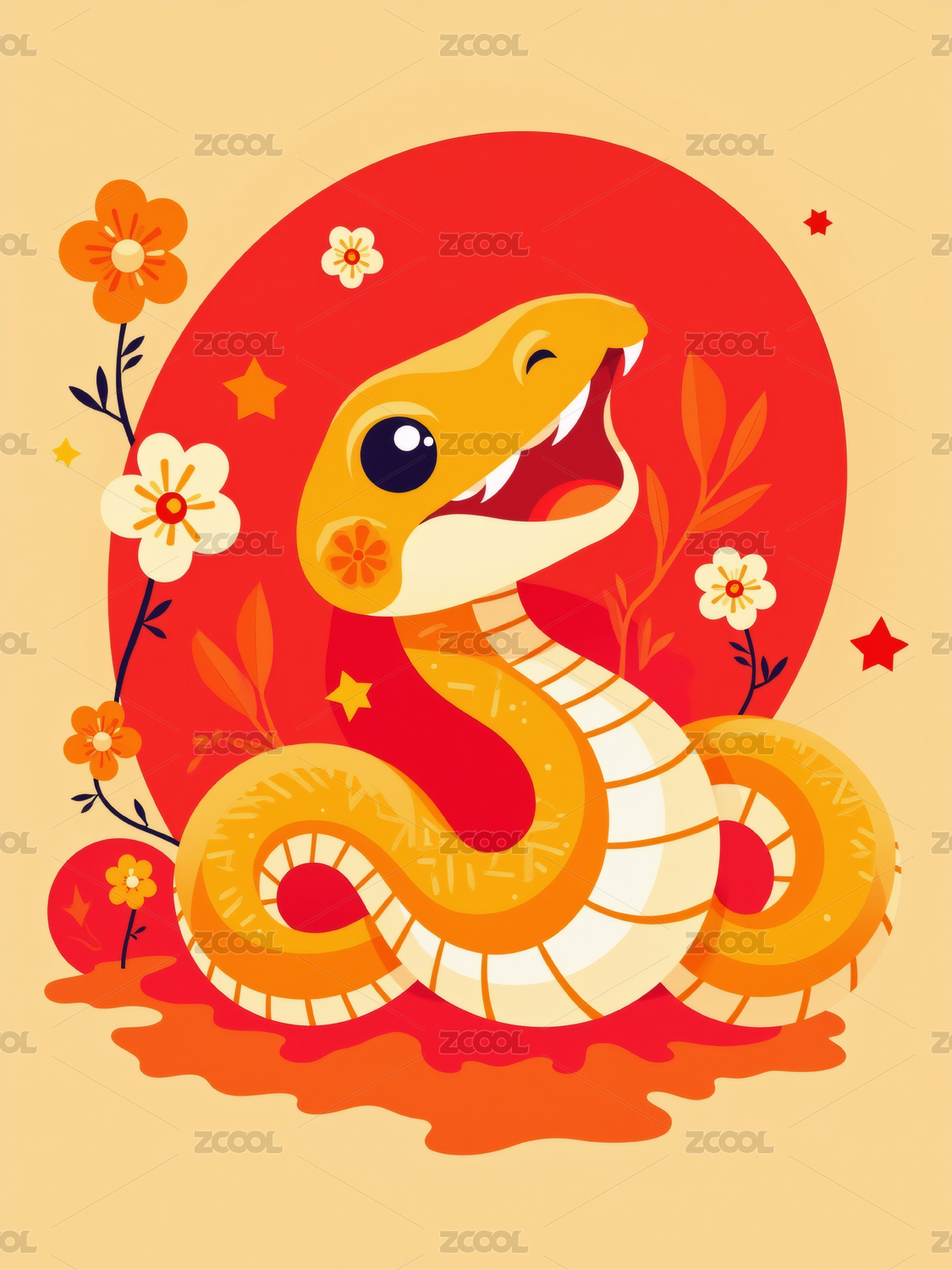 蛇年花卉艺术插画