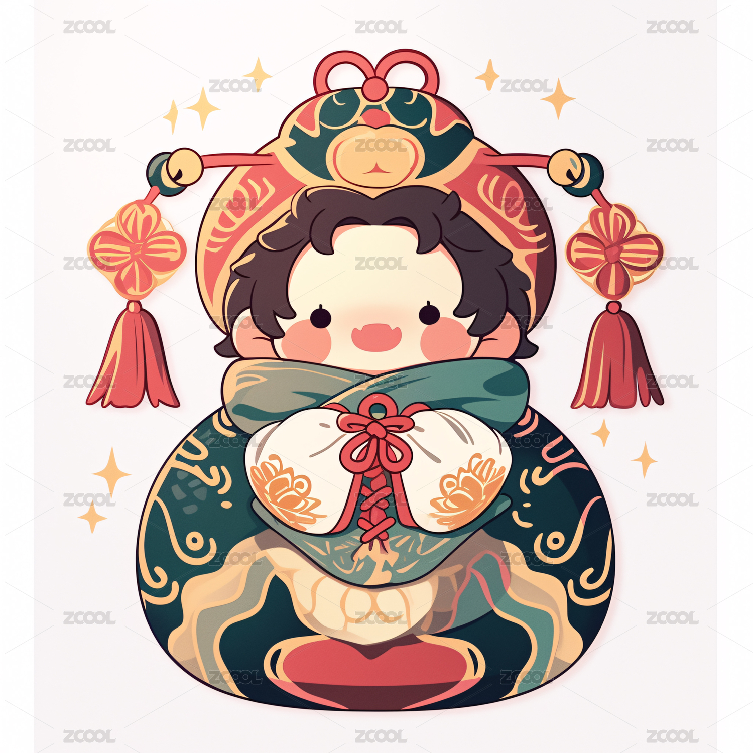 插画,传统文化,春节,动物,国潮,风,红色,节日,卡通,开心