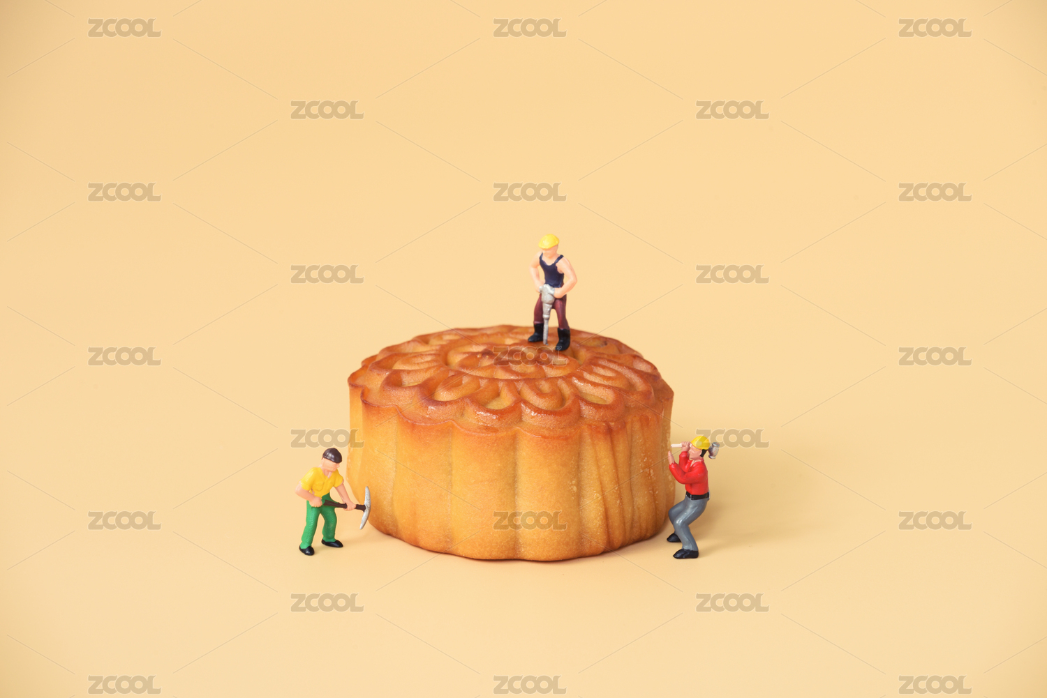 中秋节月饼和小人的微缩摄影