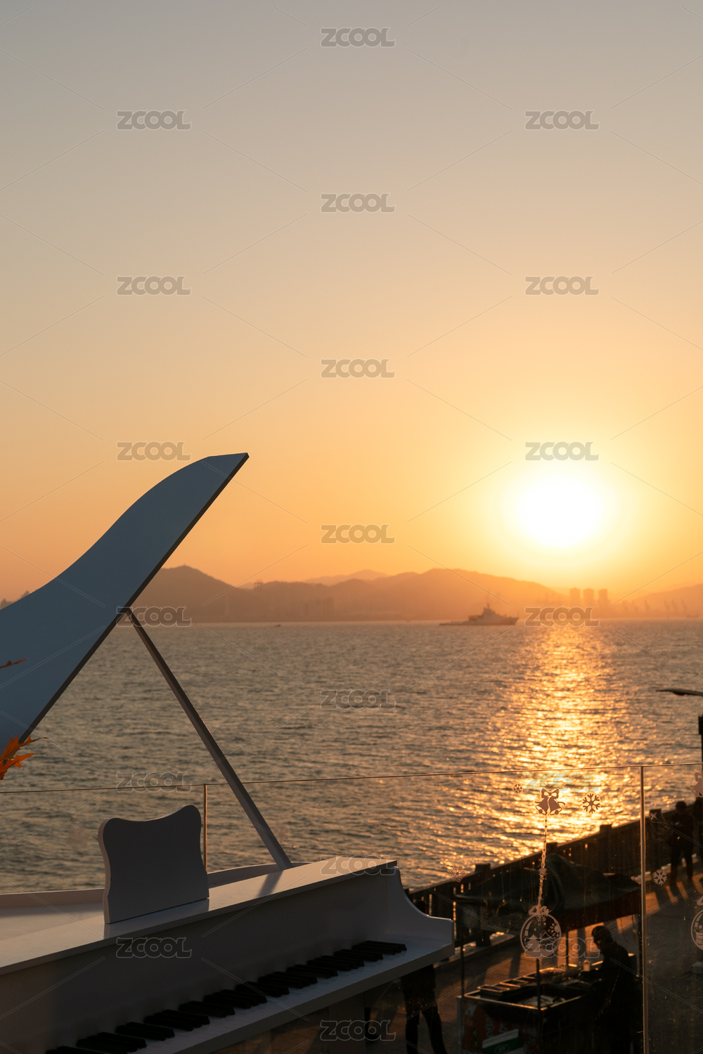 安静,海边,夕阳,落日,钢琴,三角钢琴,白色钢琴,音乐,天空