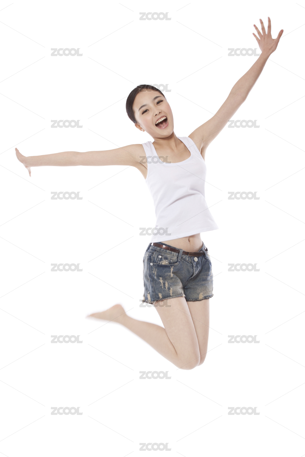 年轻女子跳入空中