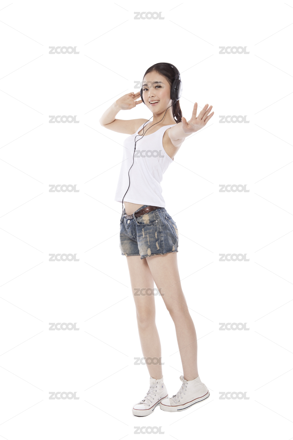 白色背景,长发,无忧无虑,女性,个性,时尚,漂亮的人,大步行走,手指,无袖上装