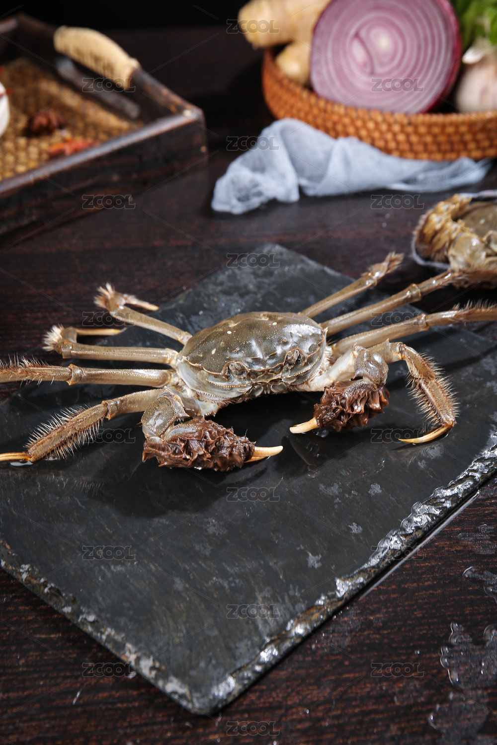 深底上的新鲜大闸蟹