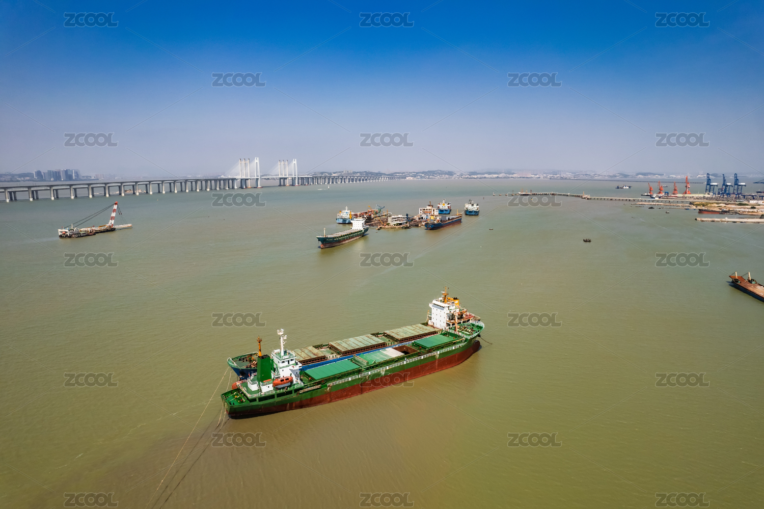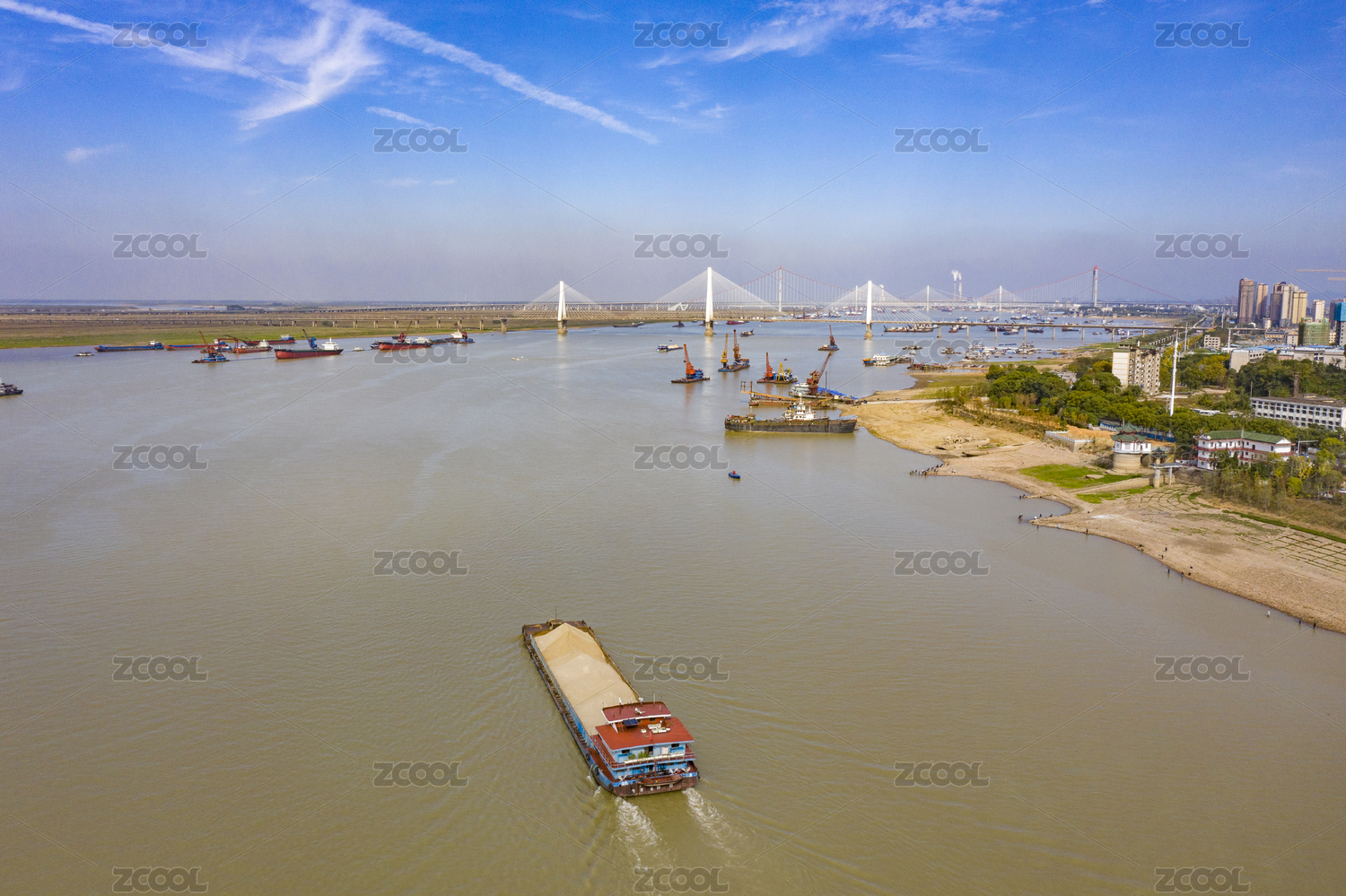 航拍中国湖南岳阳湘江和长江上的运输船队