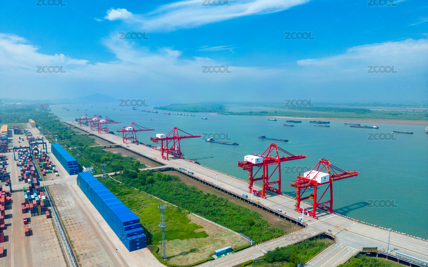 长沙望城区铜官港,港口有用于吊起重型货物的起重设备