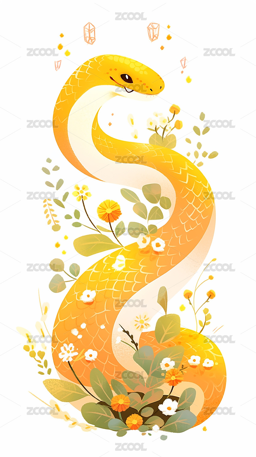 2025年生肖蛇插画背景图